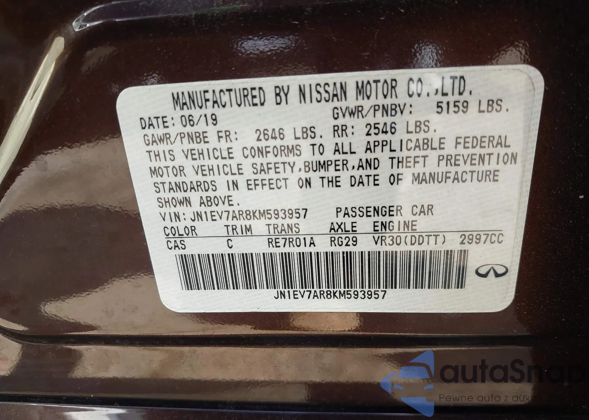 LOT: 42717875 VIN: JN1EV7AR8KM593957
