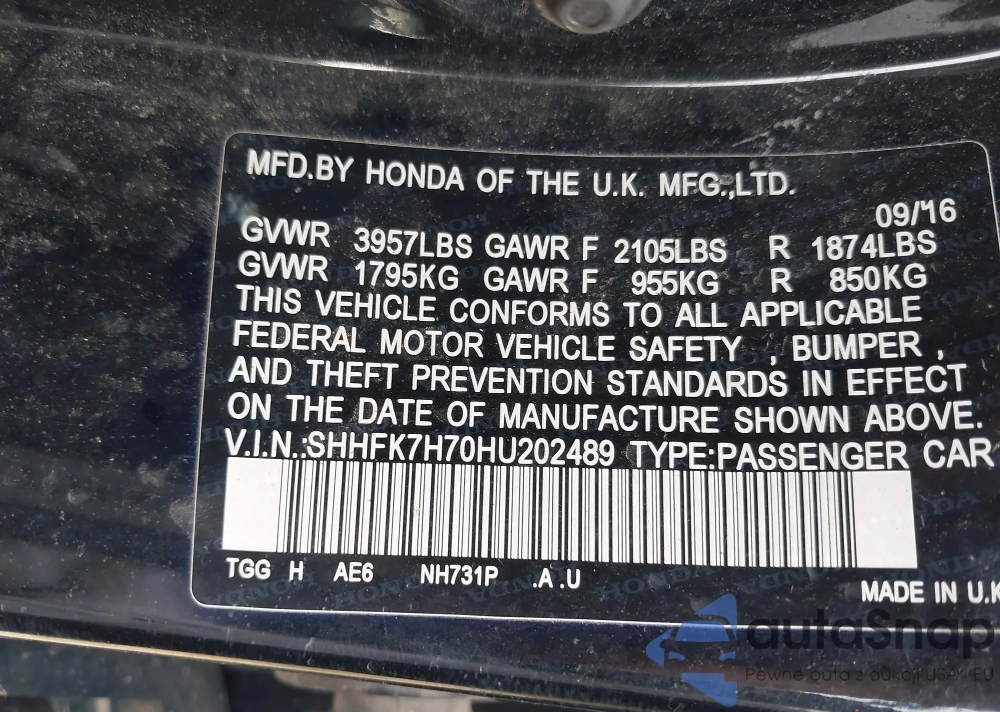 • VIN SHHFK7H70HU202489
