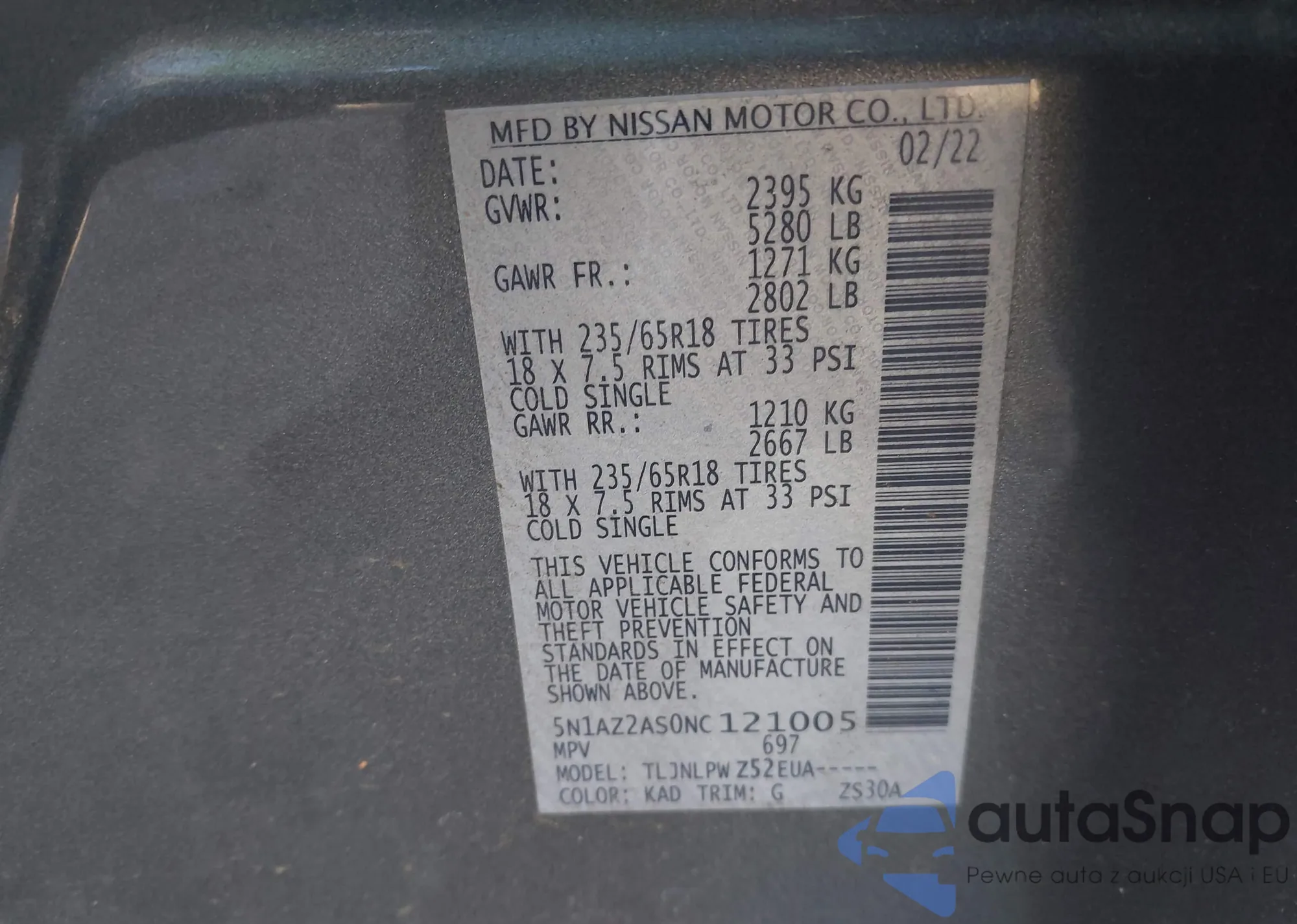 • VIN 5N1AZ2AS0NC121005