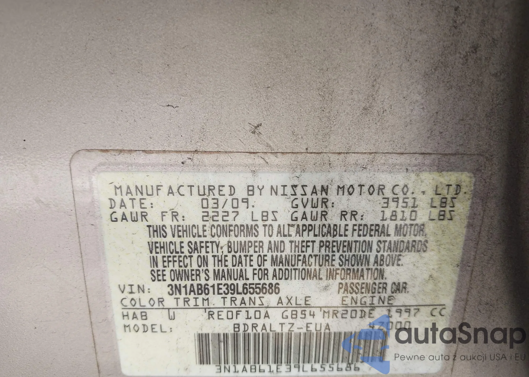 • VIN 3N1AB61E39L655686