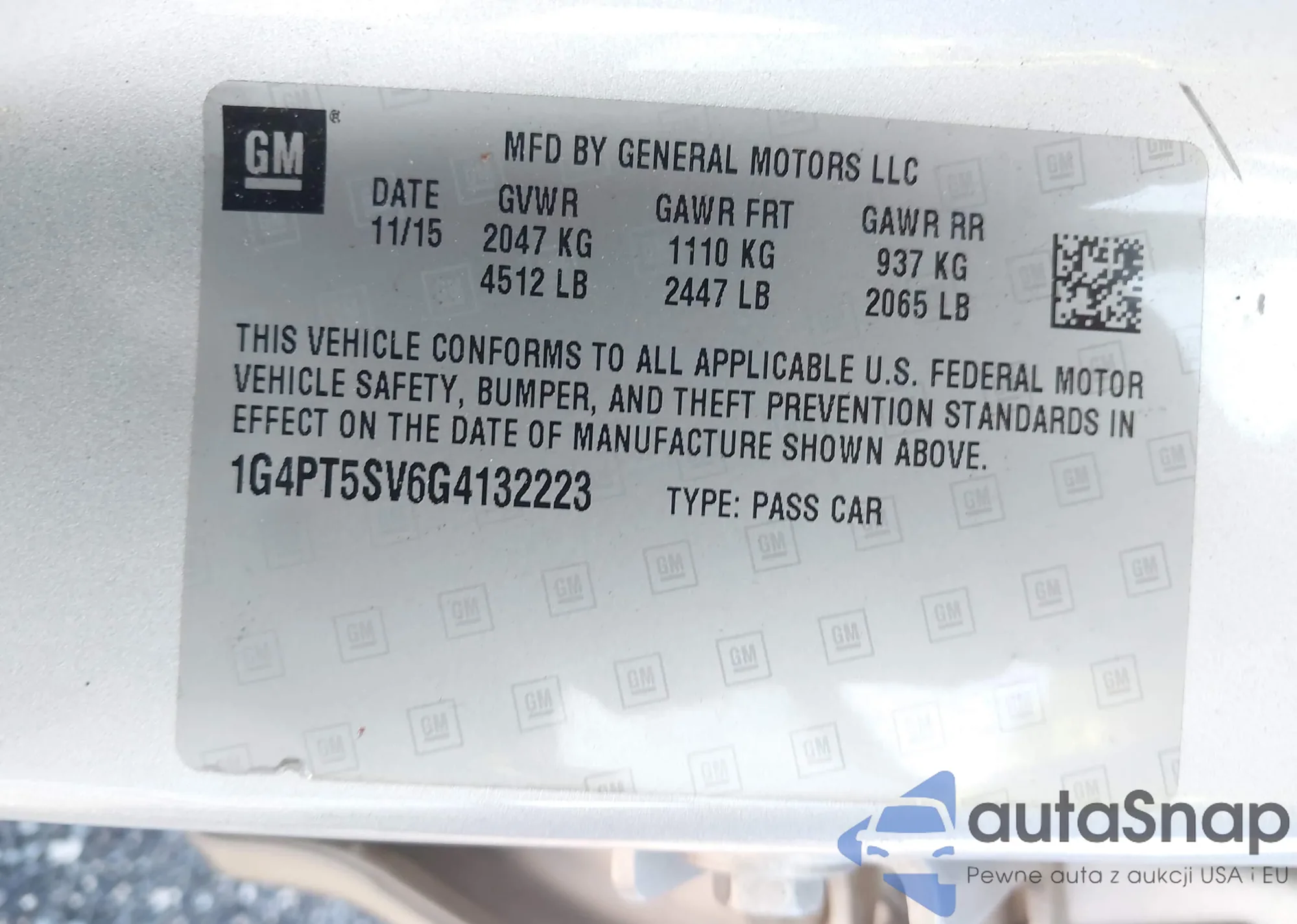 LOT: 42752973 VIN: 1G4PT5SV6G4132223