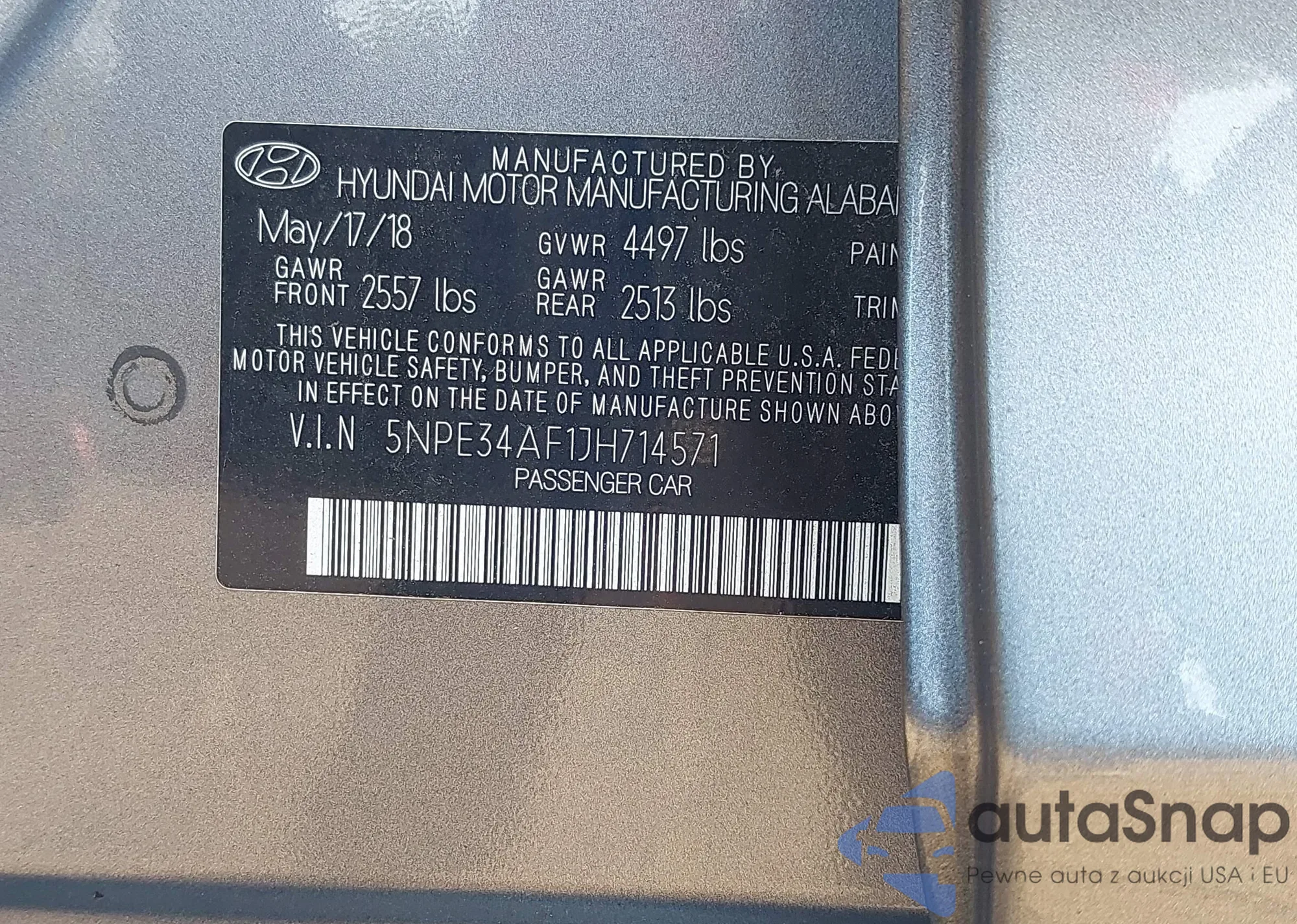 • VIN 5NPE34AF1JH714571