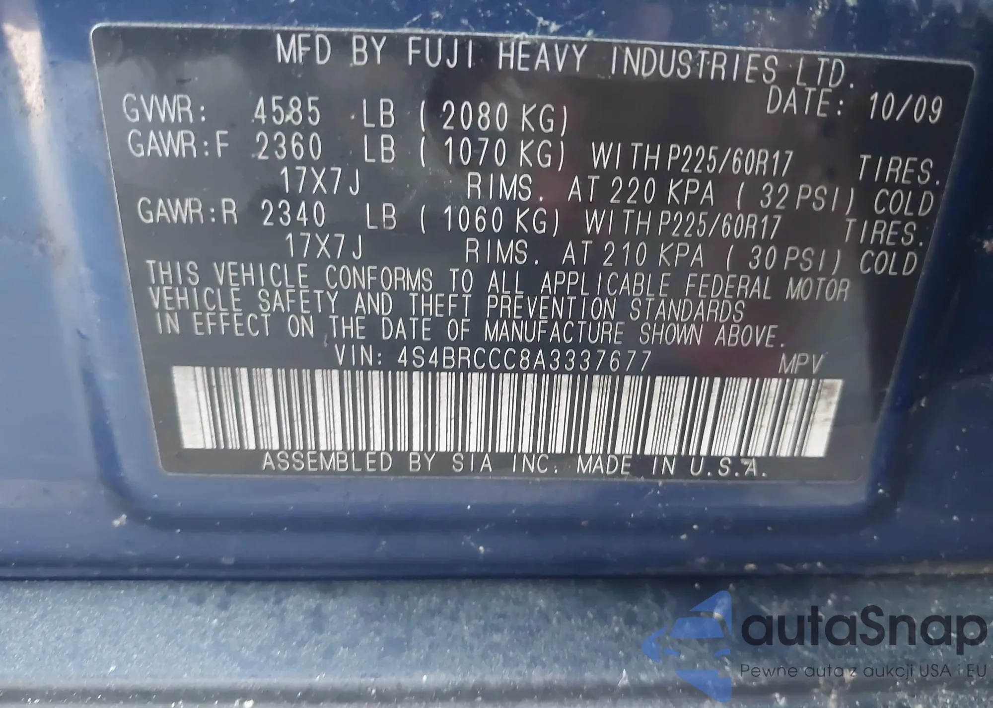 • VIN 4S4BRCCC8A3337677