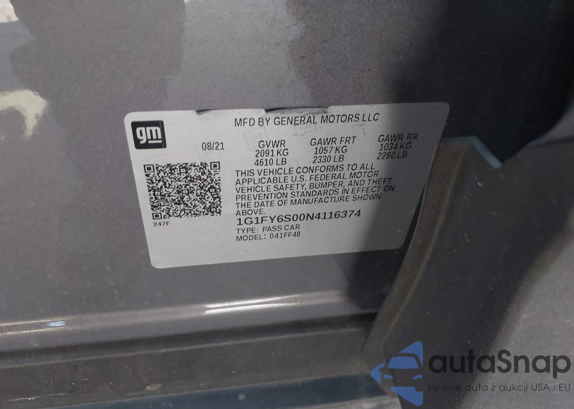 LOT: 42955716 VIN: 1G1FY6S00N4116374