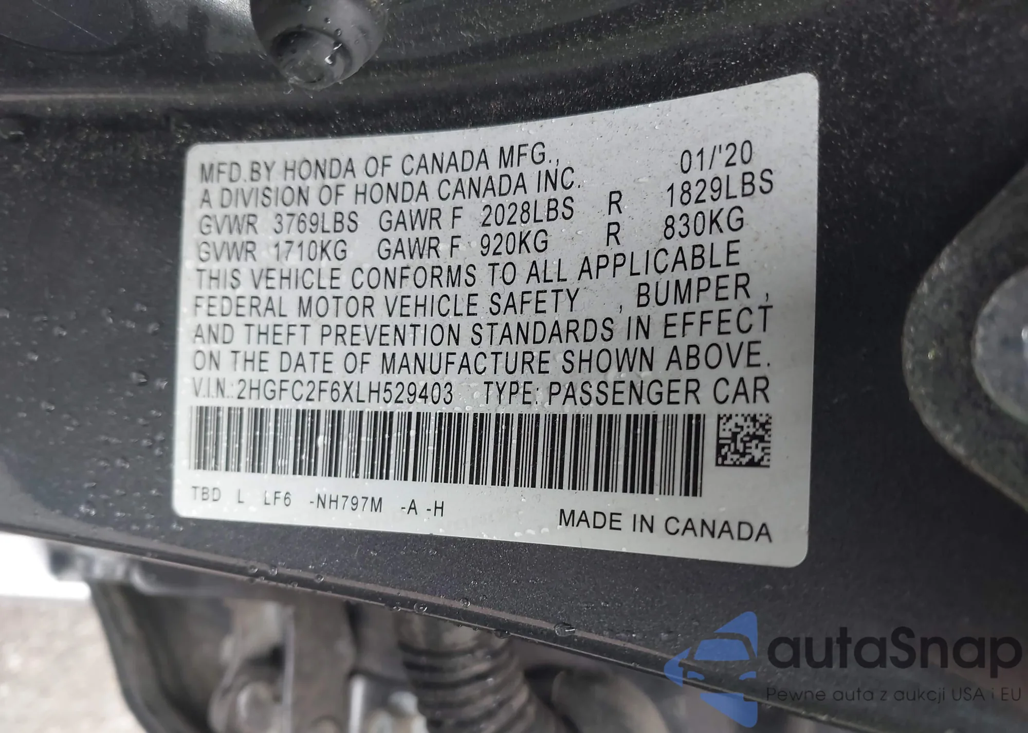 • VIN 2HGFC2F6XLH529403