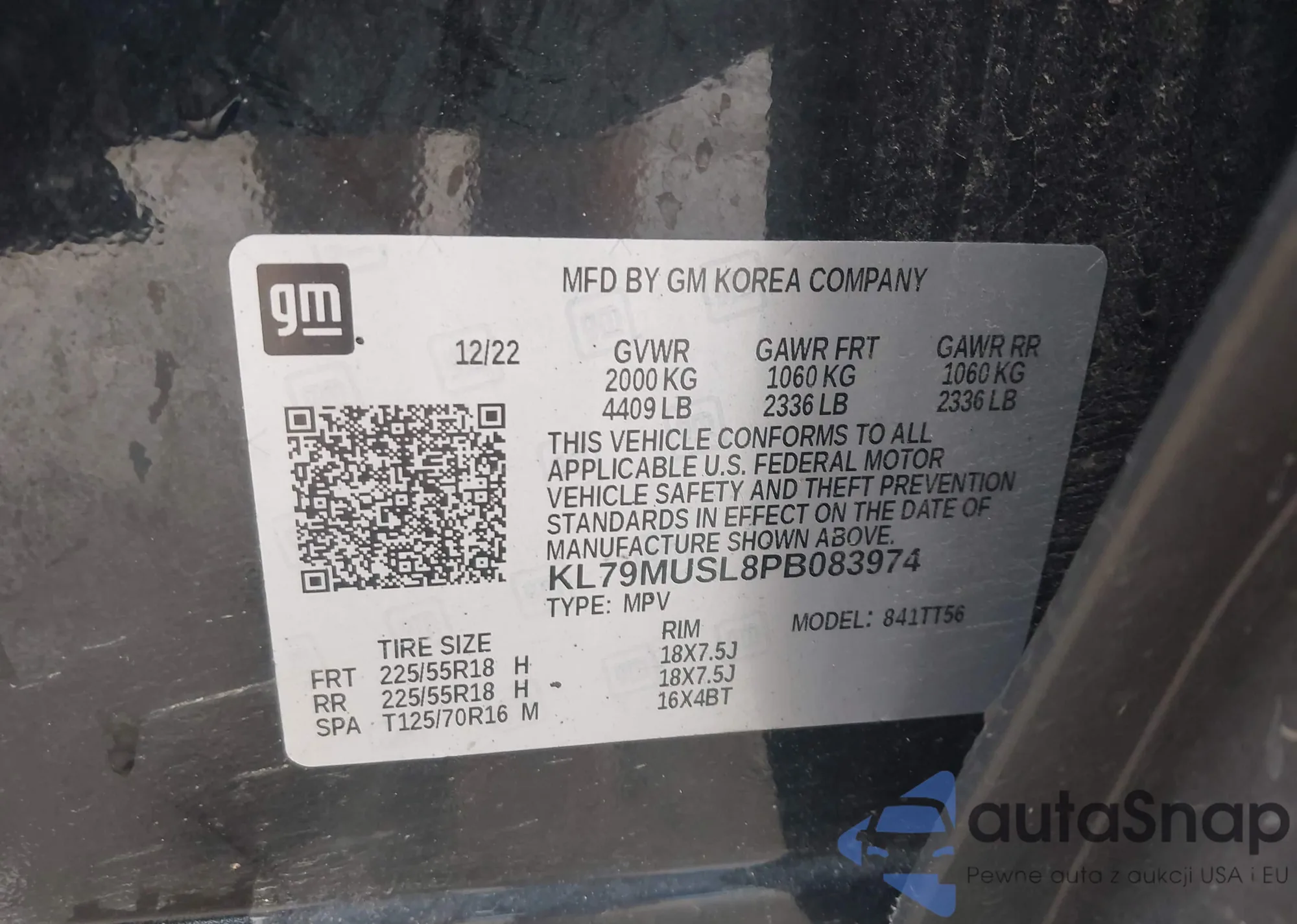 LOT: 43018270 VIN: KL79MUSL8PB083974