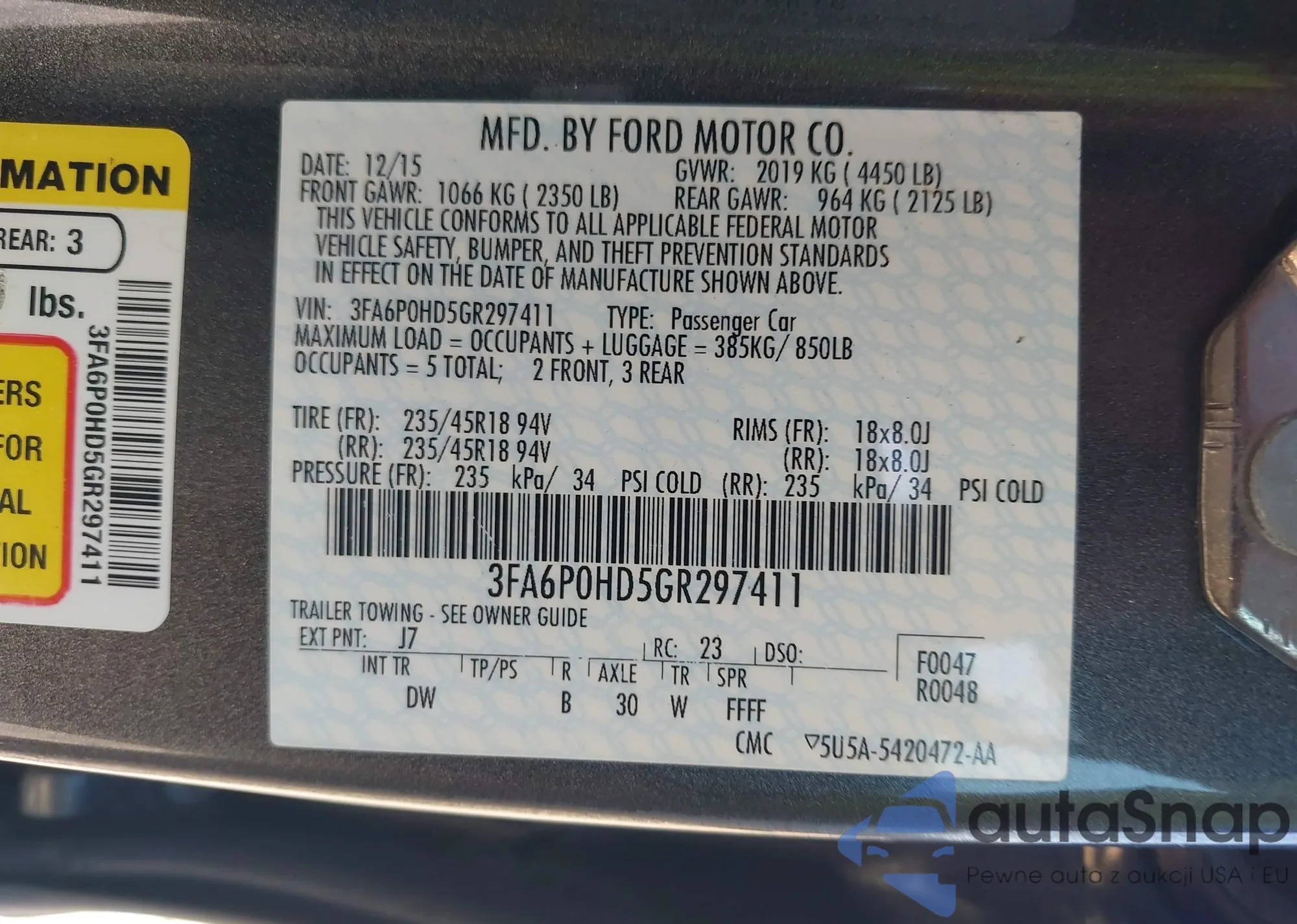 • VIN 3FADP4BJXFM108387