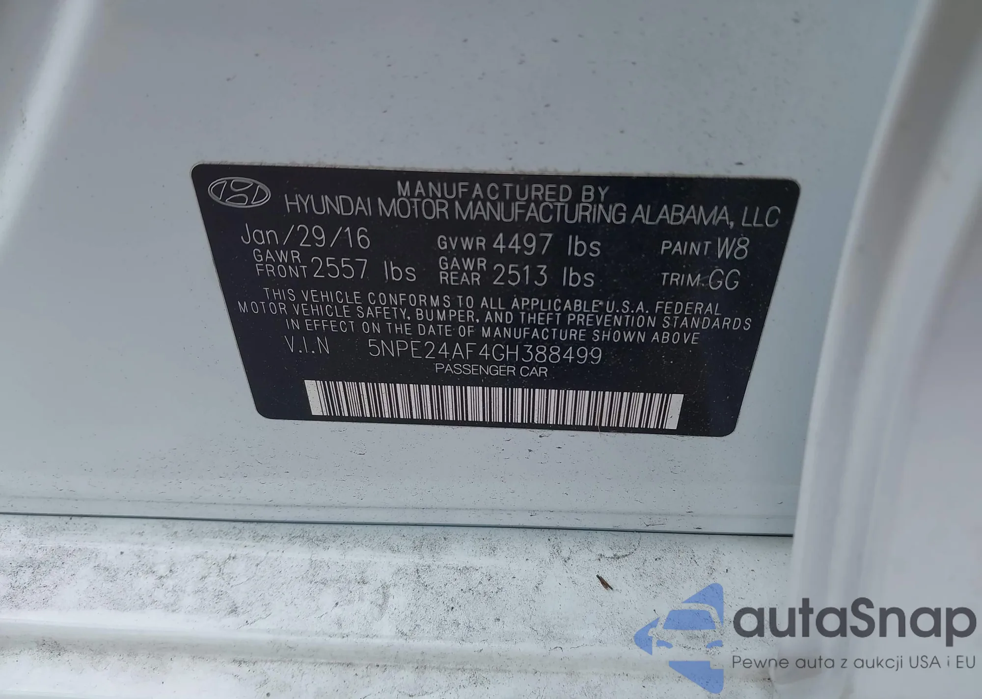 • VIN 5NPE24AF4GH388499