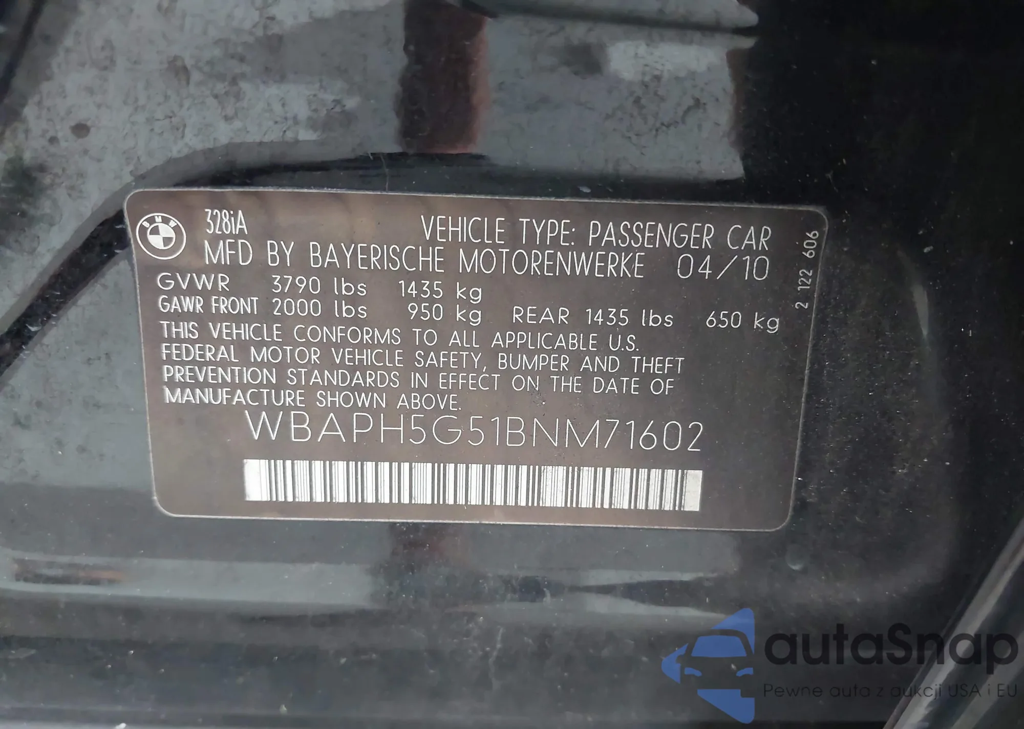 • VIN WBAPH5G51BNM71602