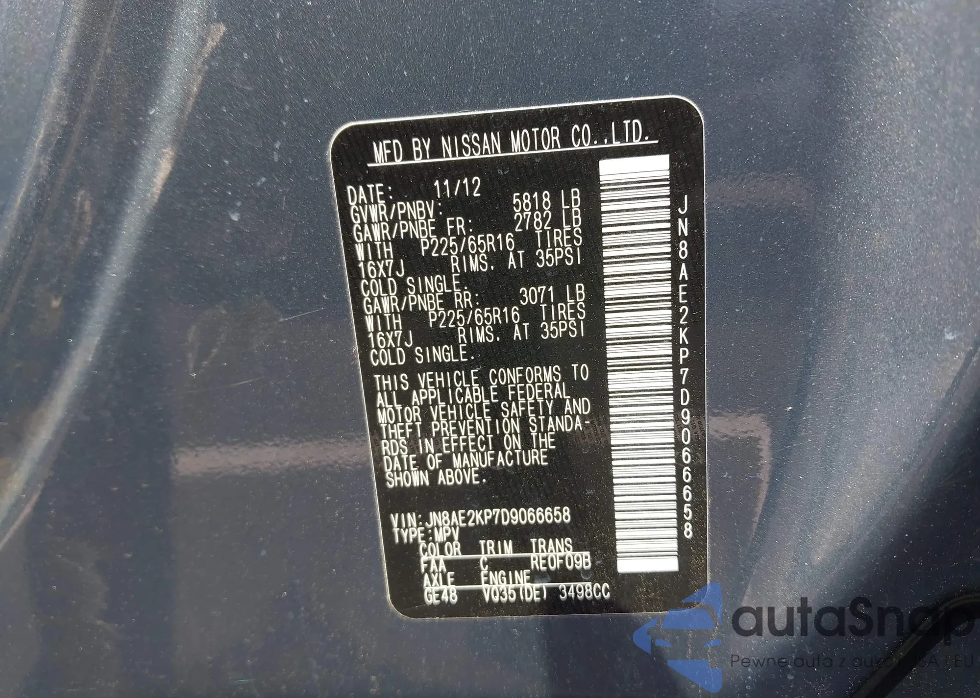 LOT: 43072595 VIN: 3N1BC11E19L394756