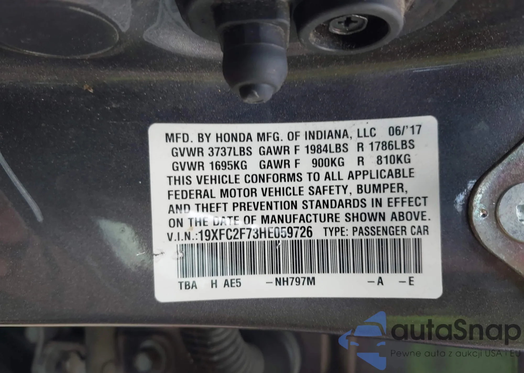 LOT: 43073327 VIN: JHMGK5H57HS001912
