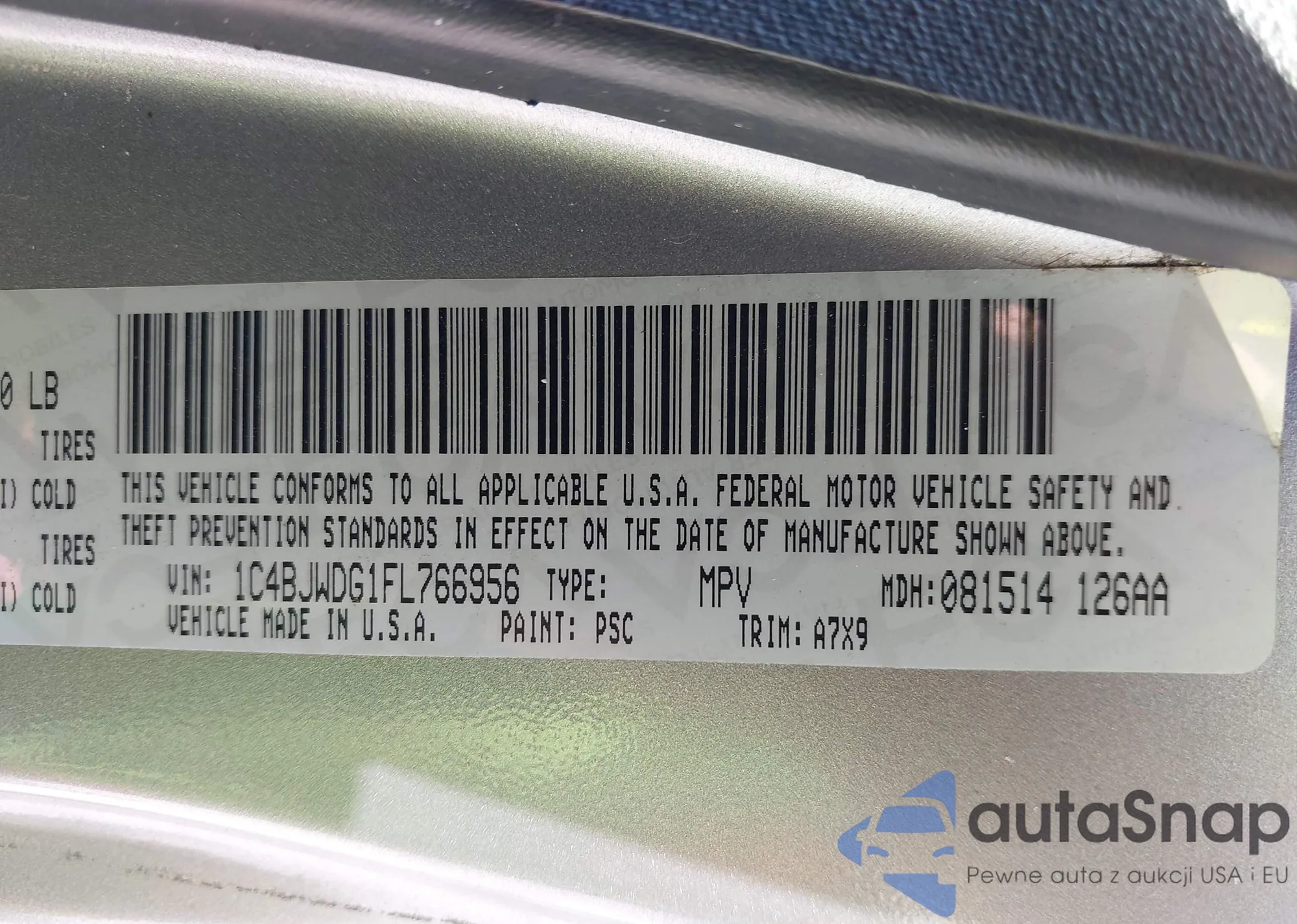 • VIN 1C4BJWDG1FL766956