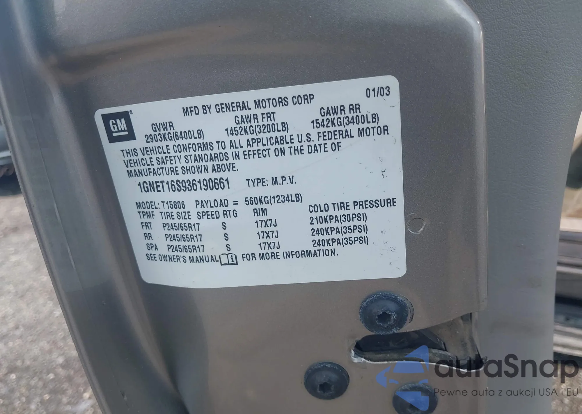 LOT: 43128856 VIN: 1GNET16S936190661