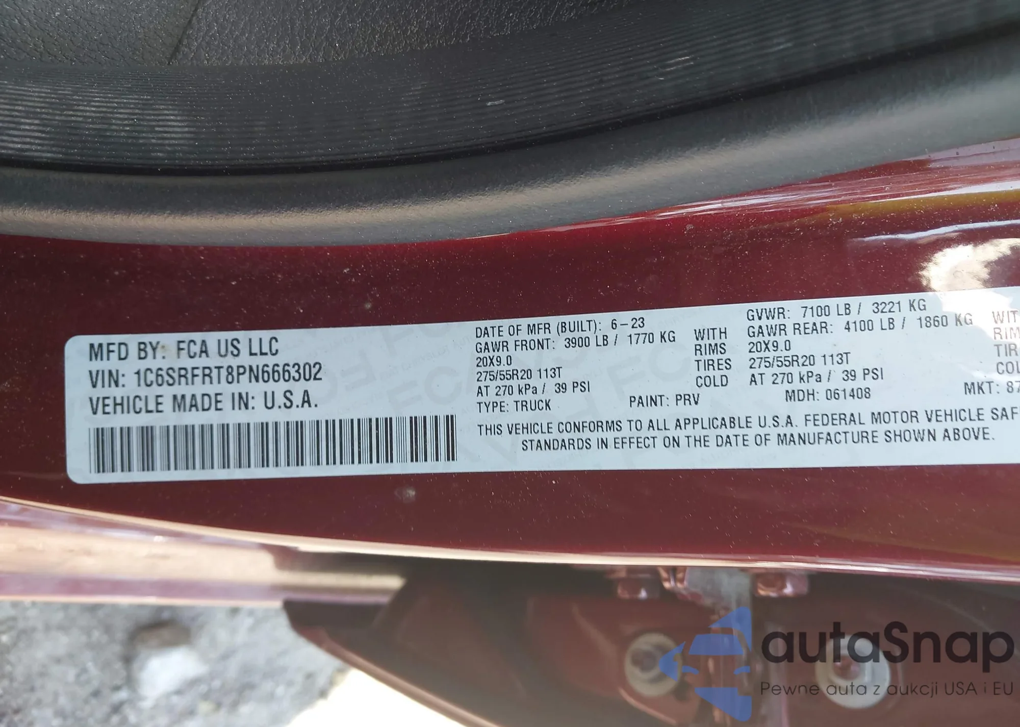 • VIN 1C6SRFRT8PN666302
