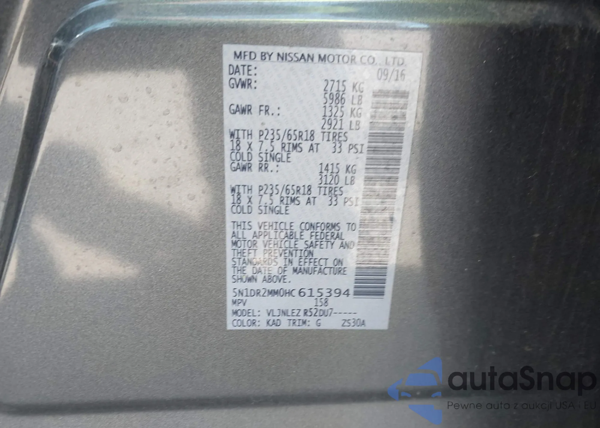 • VIN 5N1DR2MM0HC615394