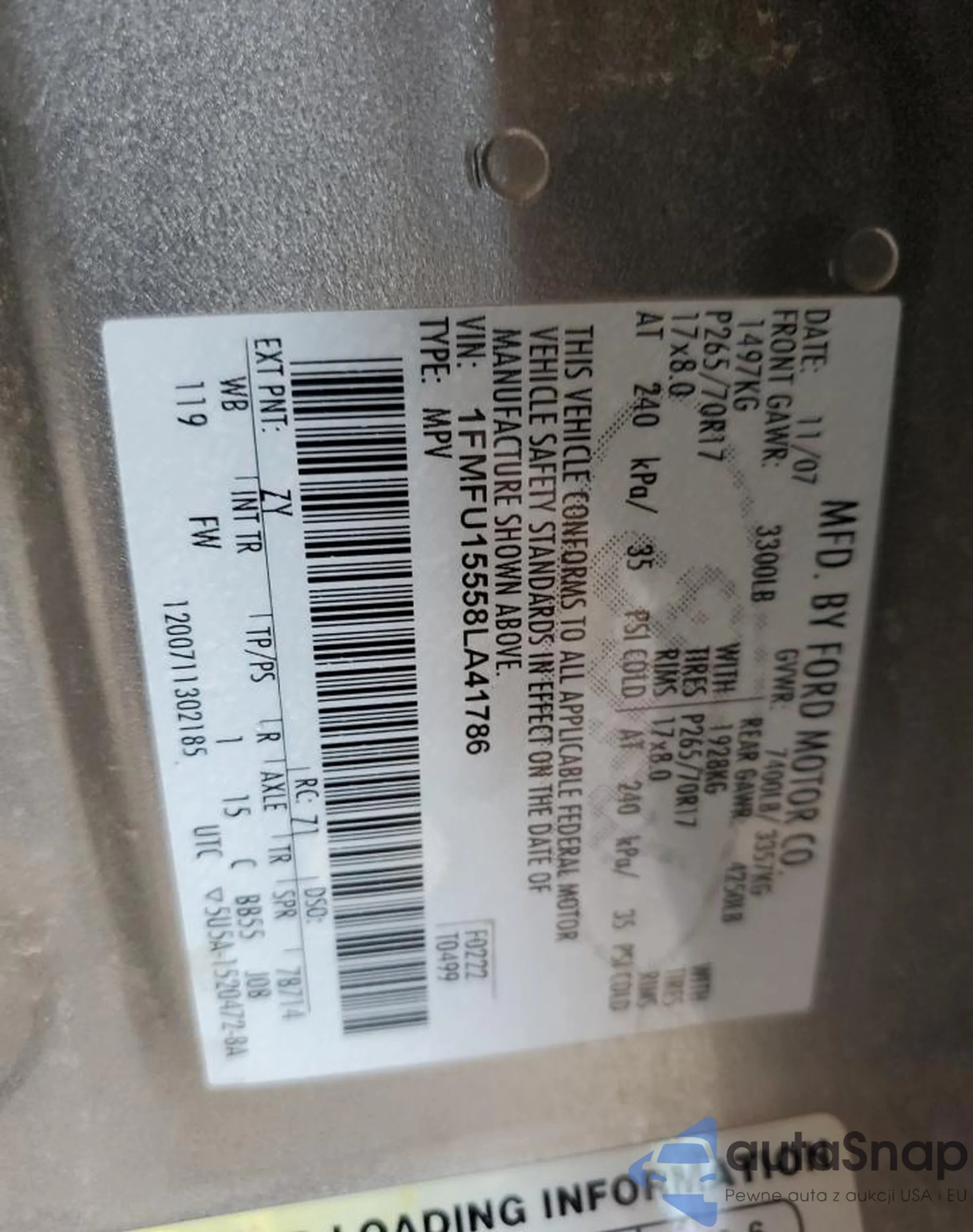 • VIN 5TFAX5GN7LX176439