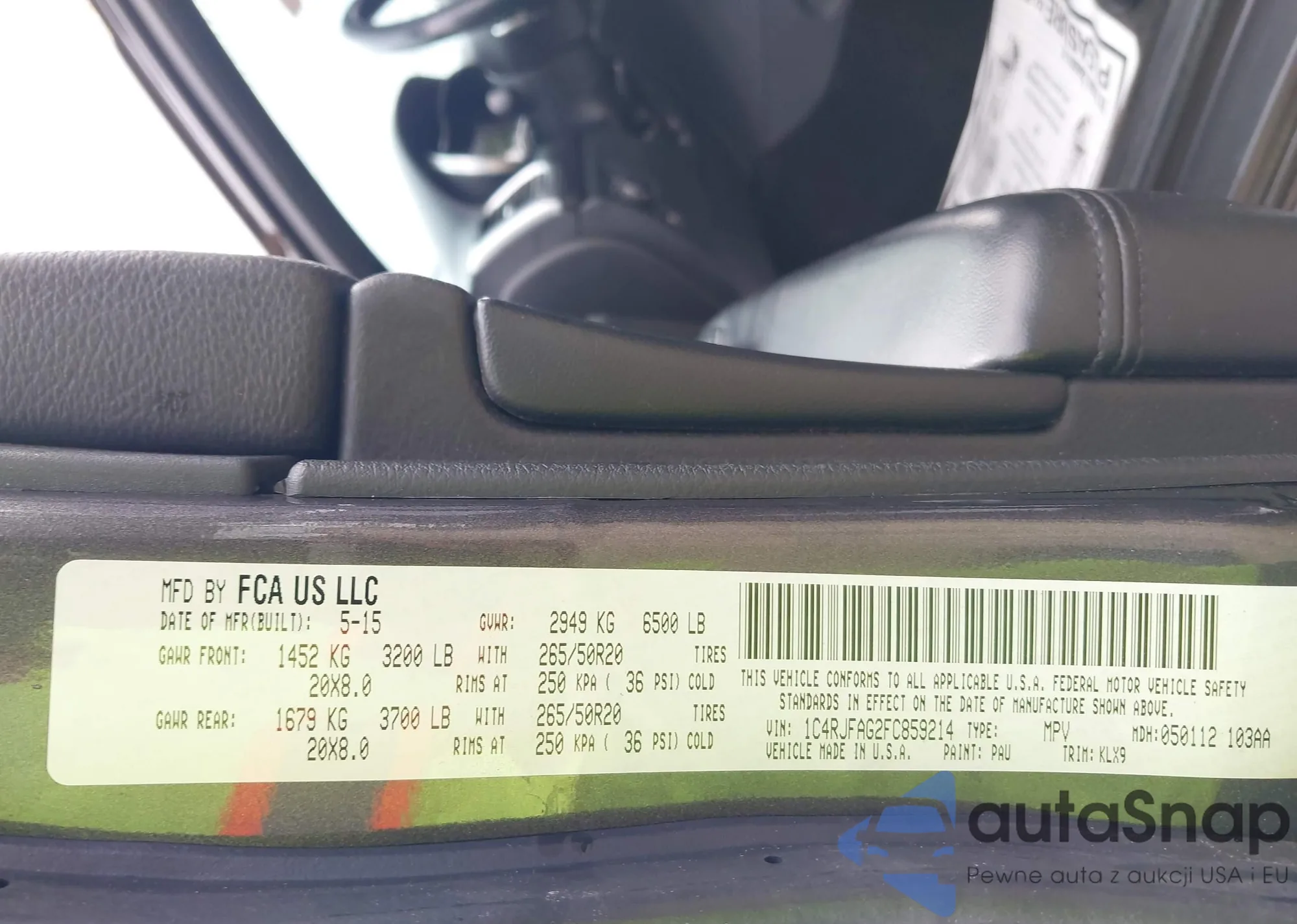 • VIN 1C4RJFAG2FC859214