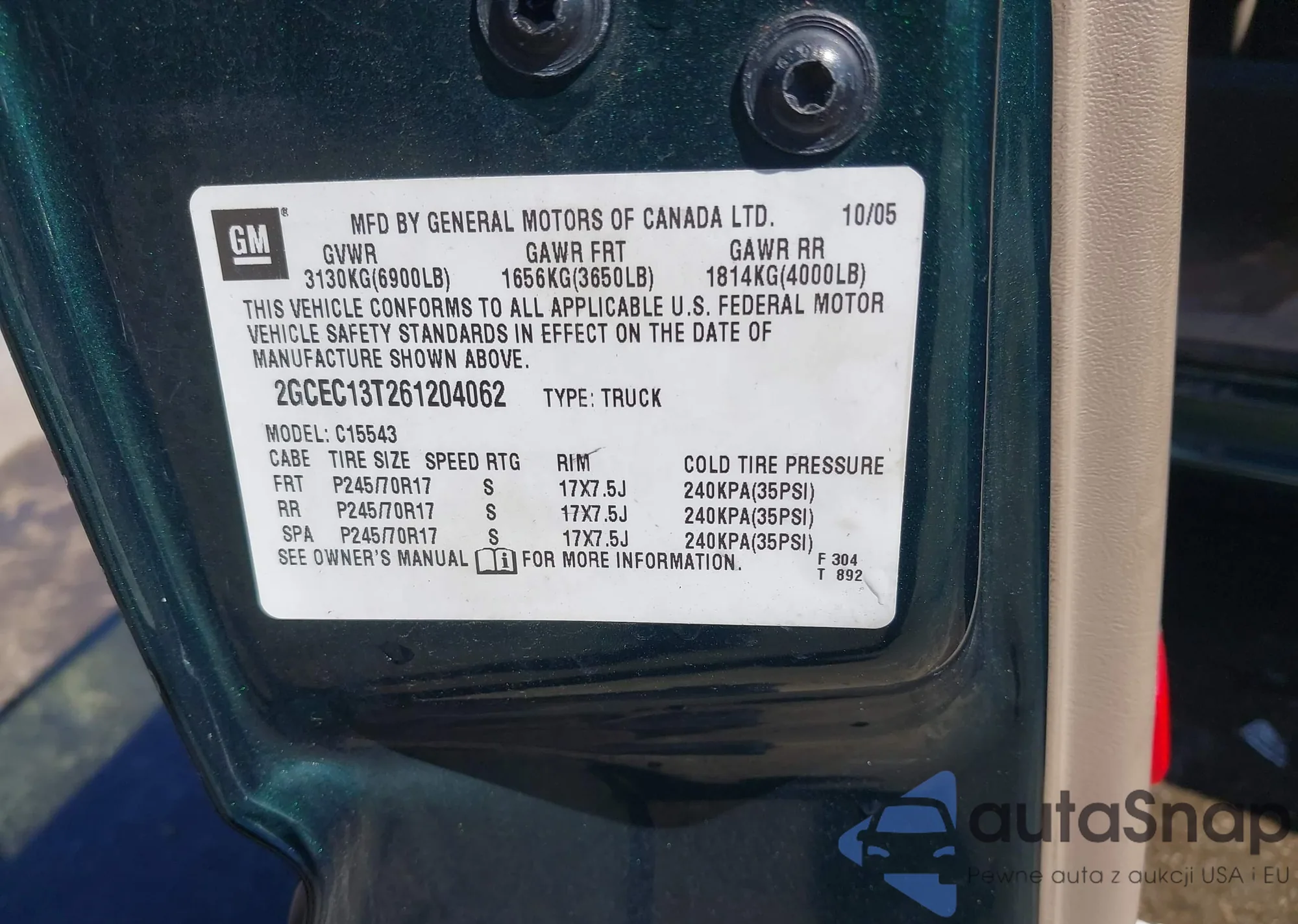 • VIN 2GCEC13T261204062