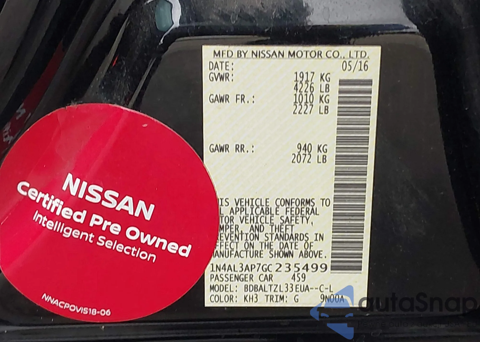 • VIN 1N4AL3AP7GC235499