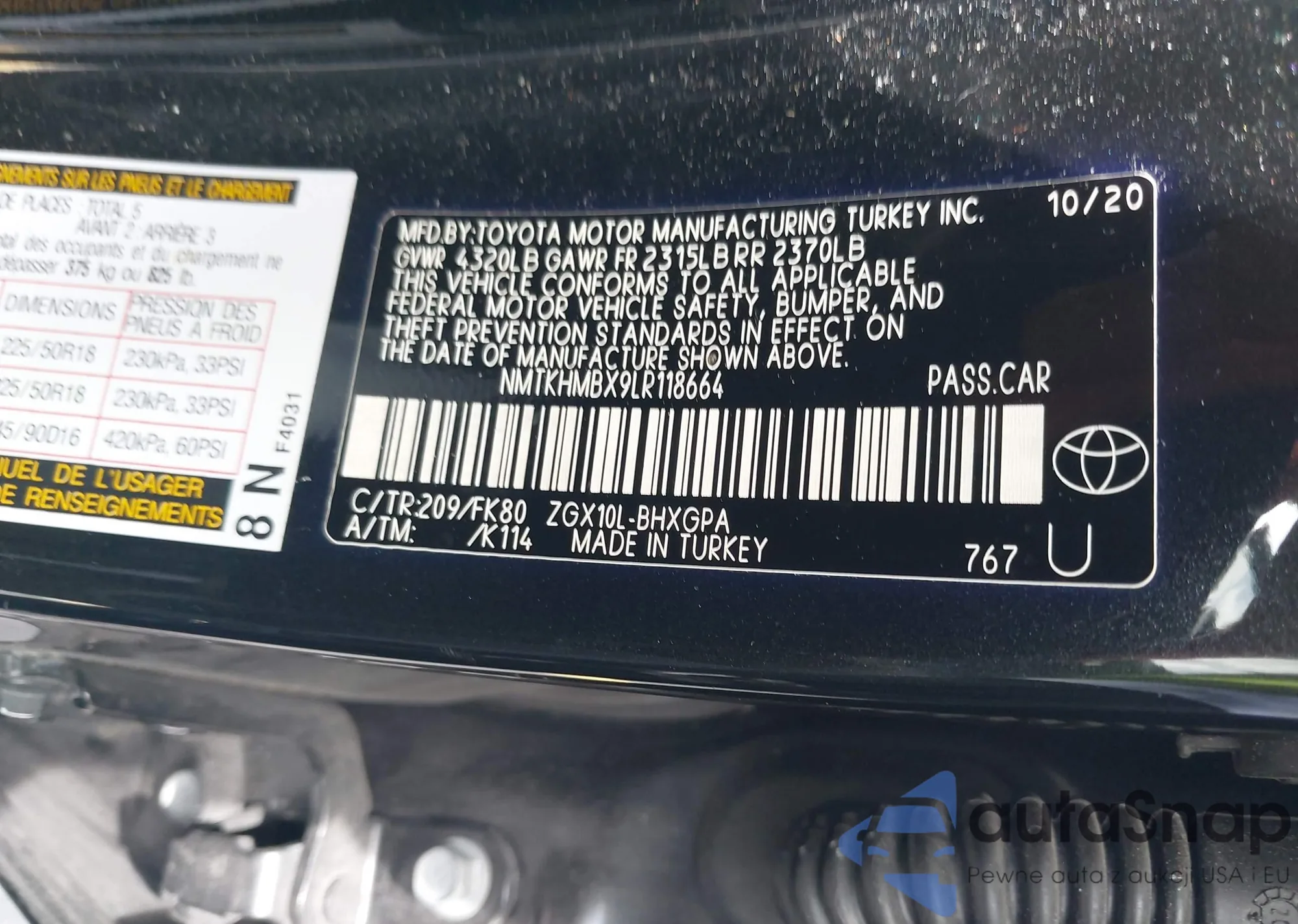 LOT: 42635438 VIN: NMTKHMBX9LR118664