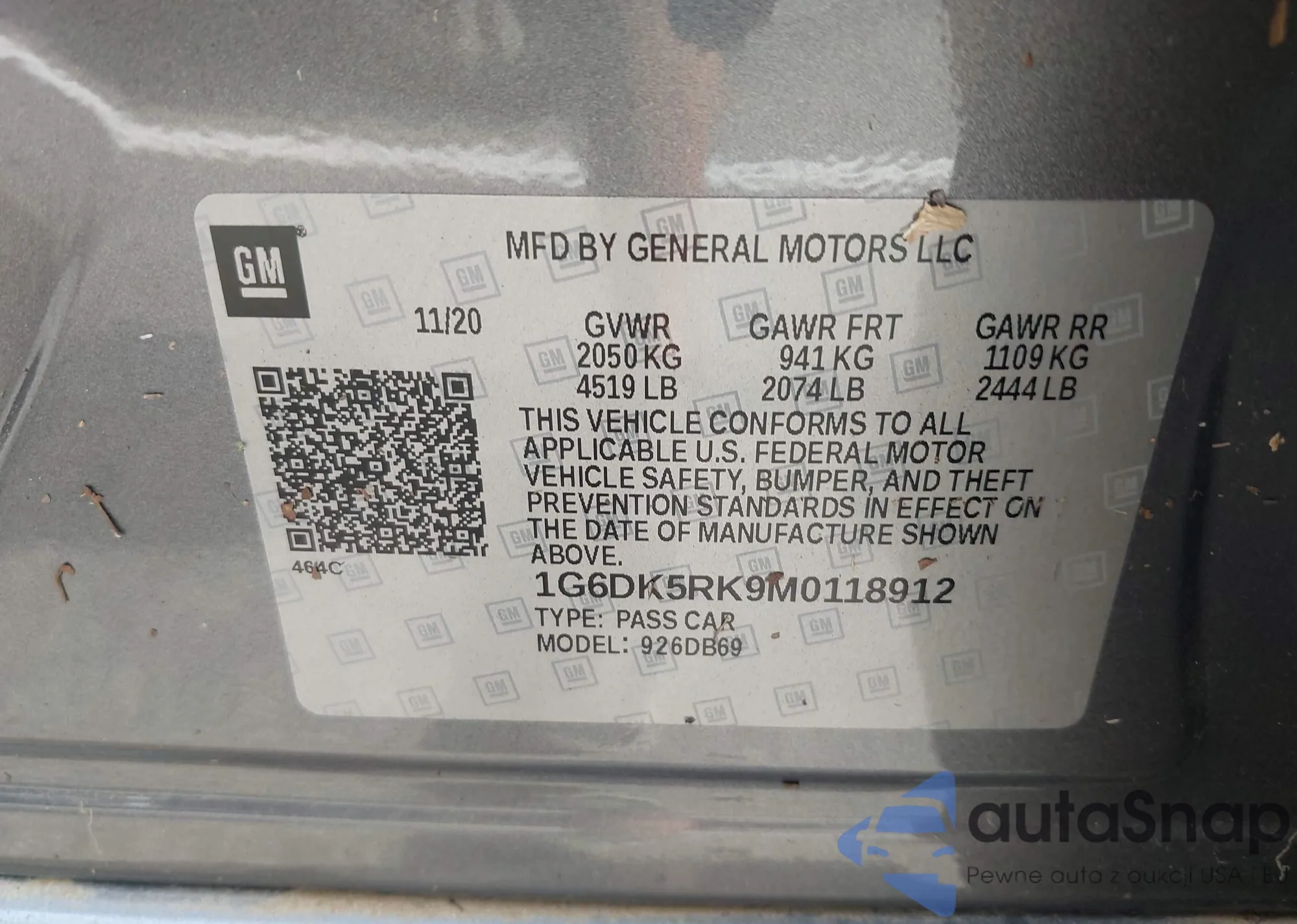 LOT: 42695579 VIN: 1G6DK5RK9M0118912