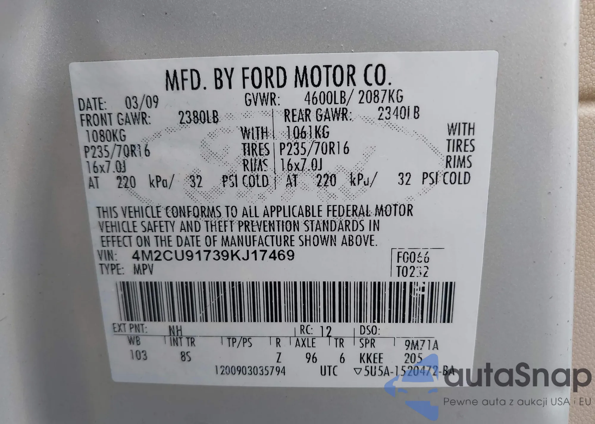 LOT: 42036496 VIN: 1FMCU93108KA26328