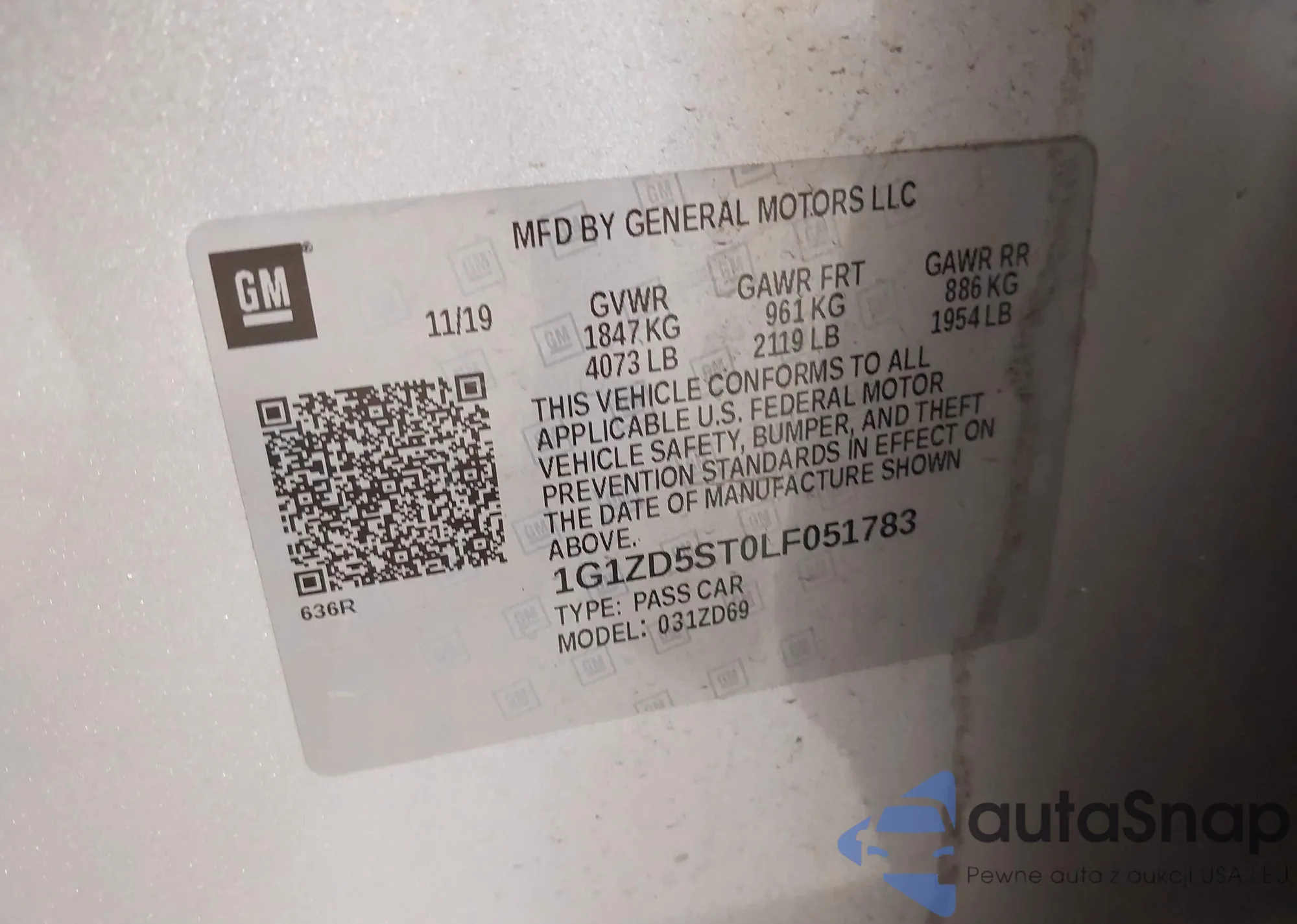 • VIN 1G1ZD5ST0LF051783