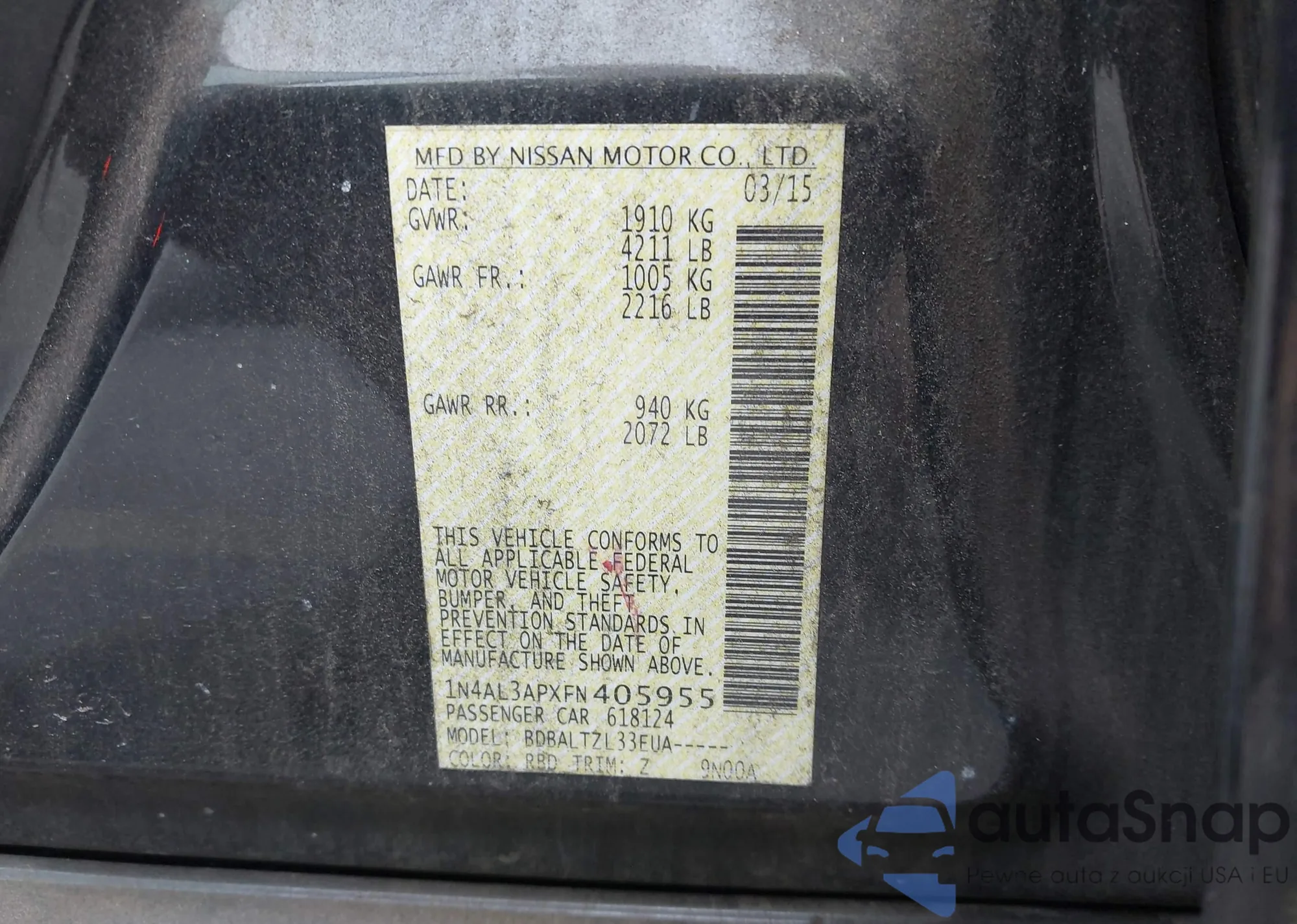 LOT: 42274066 VIN: 1N4BL4DV3MN309943