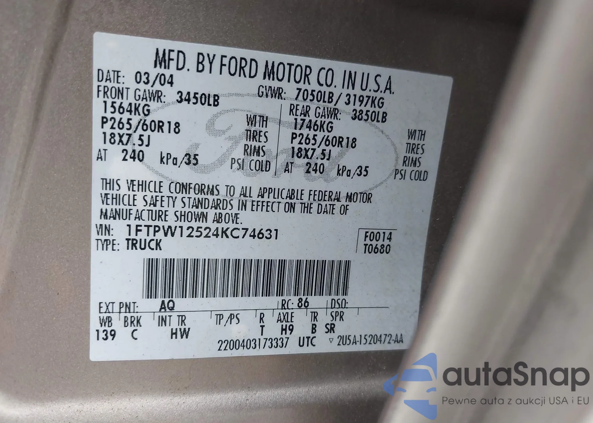 LOT: 42753512 VIN: KM8K6CAB0PU941696