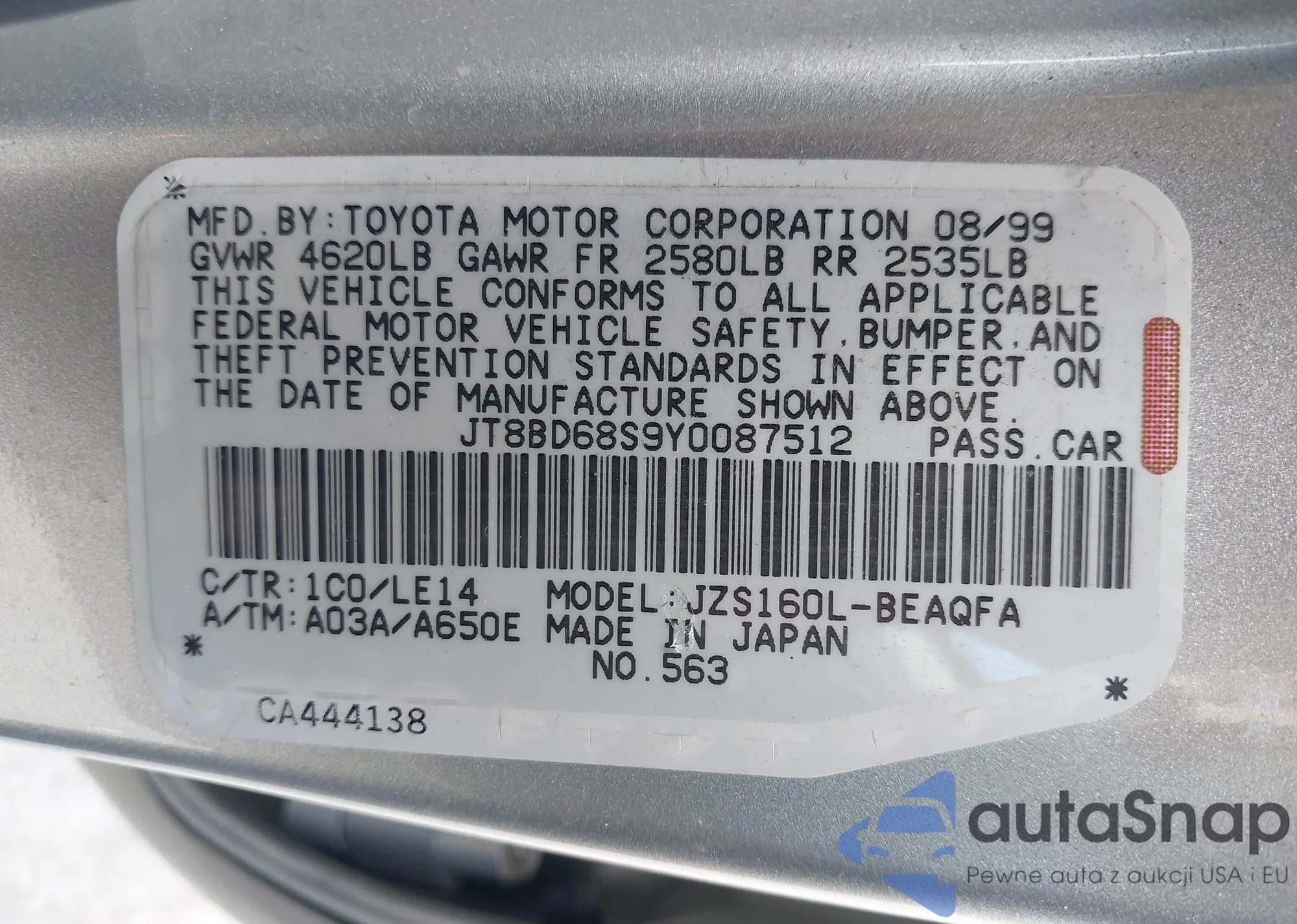 LOT: 43075544 VIN: JT8BD68S9Y0087512