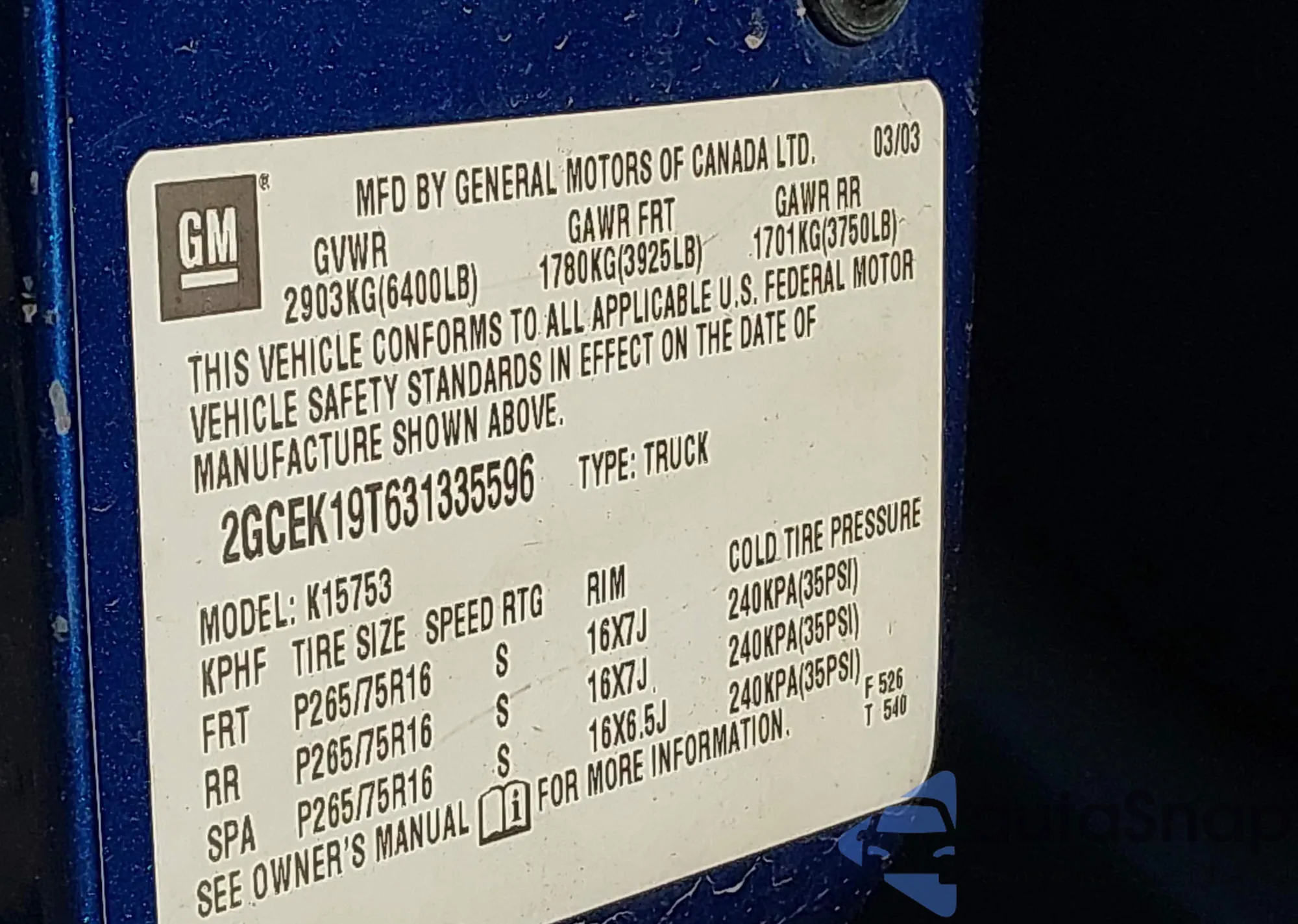 • VIN 3GYEK62N46G141812