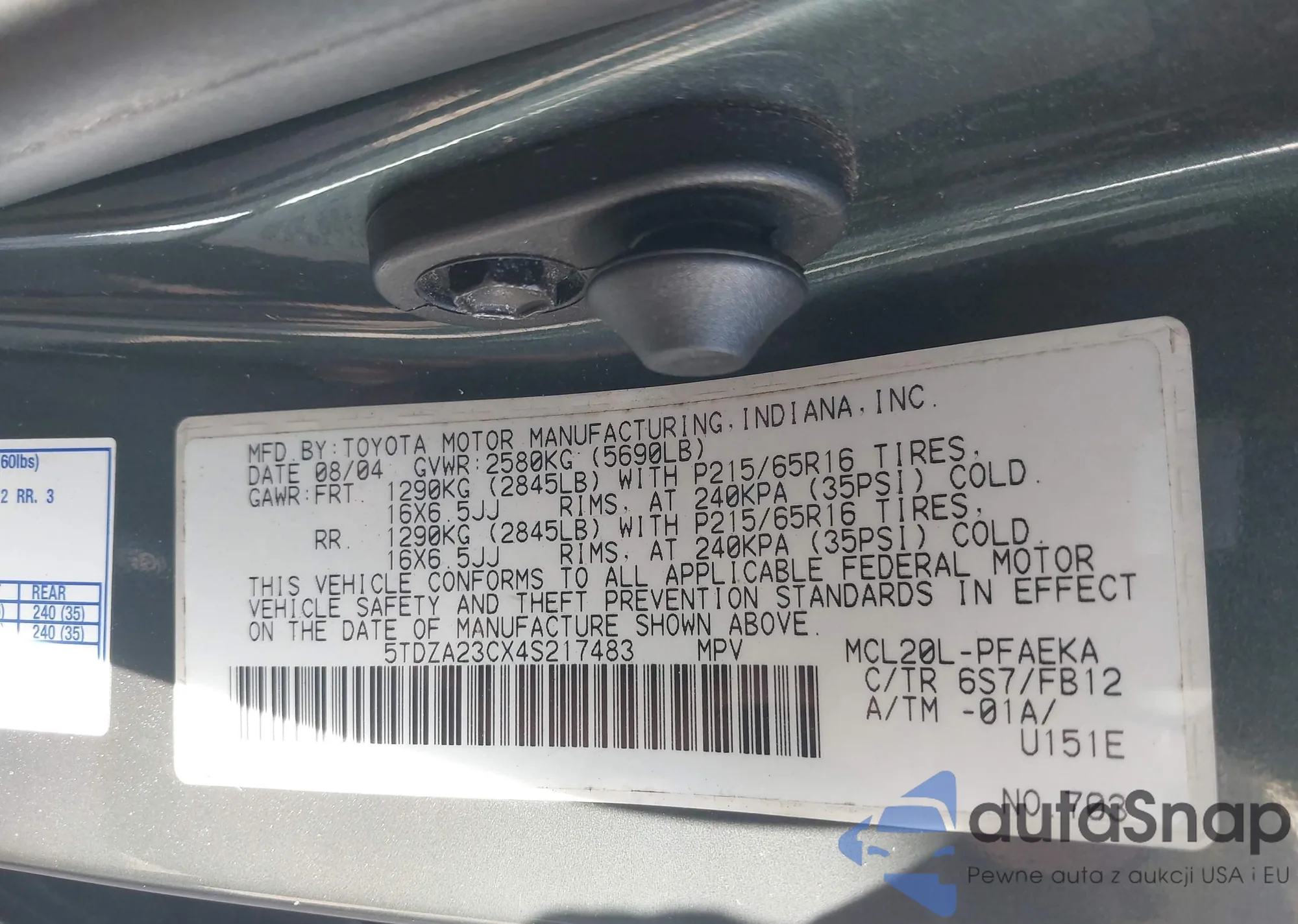 • VIN 5TDZA23CX4S217483