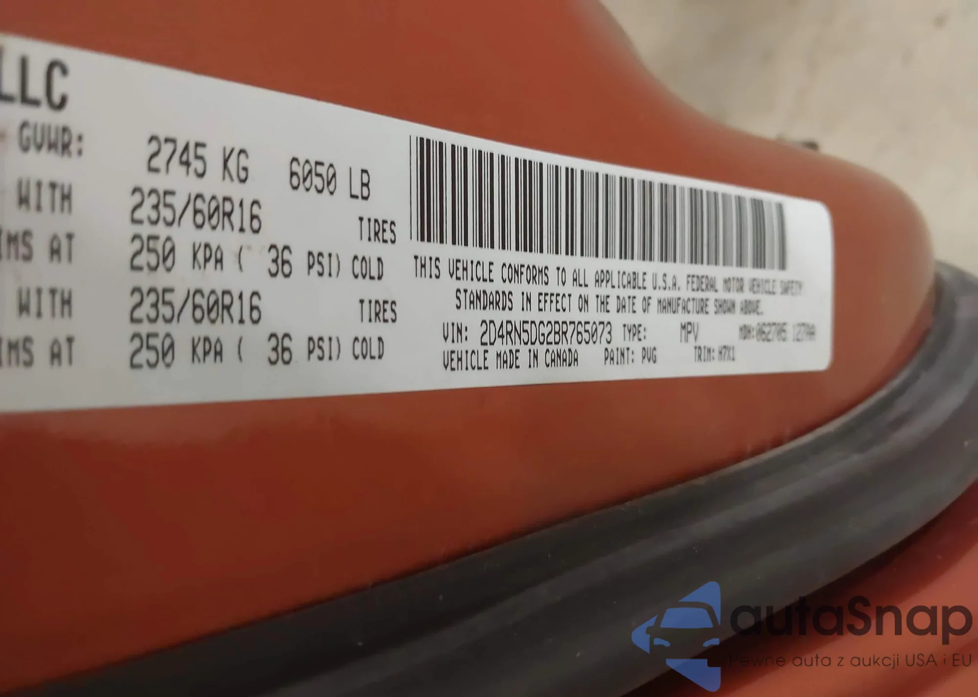 • VIN 2D4RN5DG2BR765073