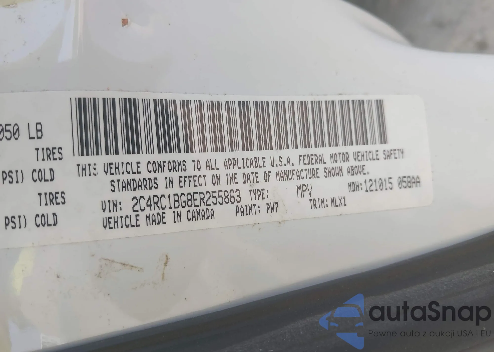 • VIN 2C4RC1BG8ER255863