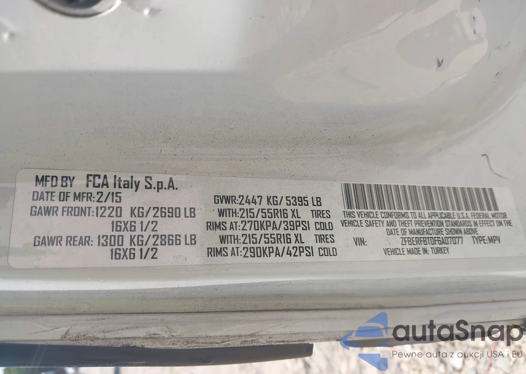 LOT: 43119659 VIN: ZFBERFBT0F6A07077