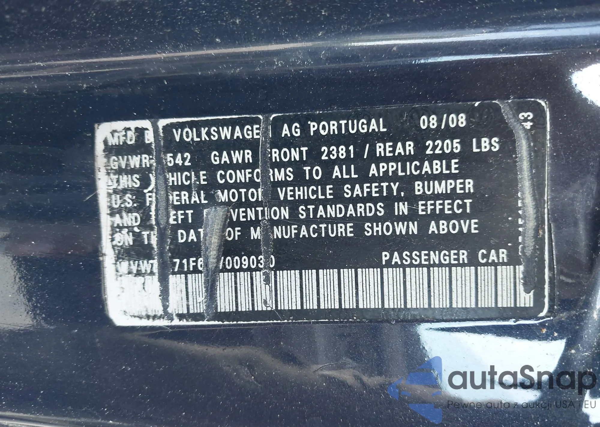 LOT: 43123033 VIN: WVWBA71F69V009030