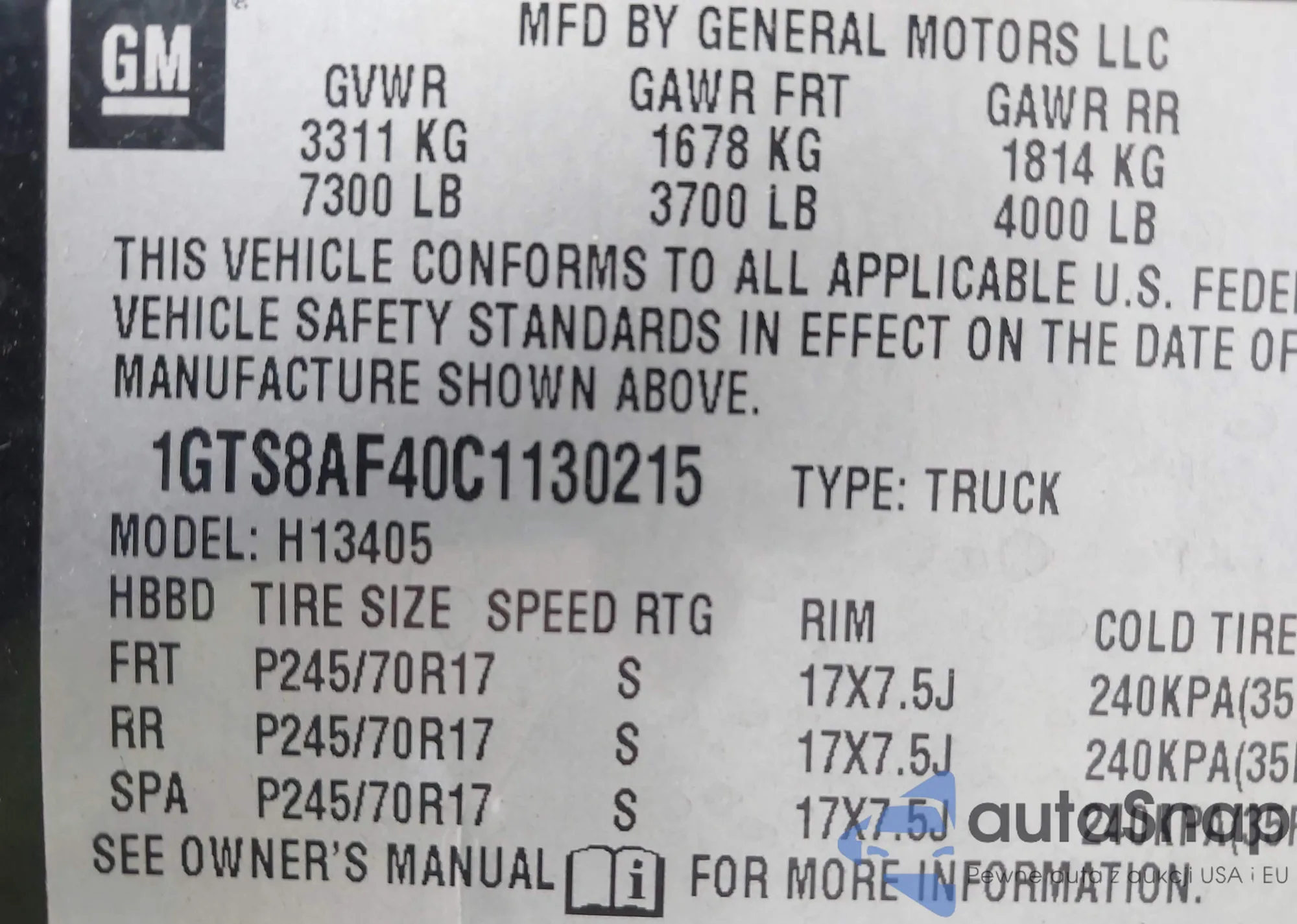 • VIN 1GTS8AF40C1130215