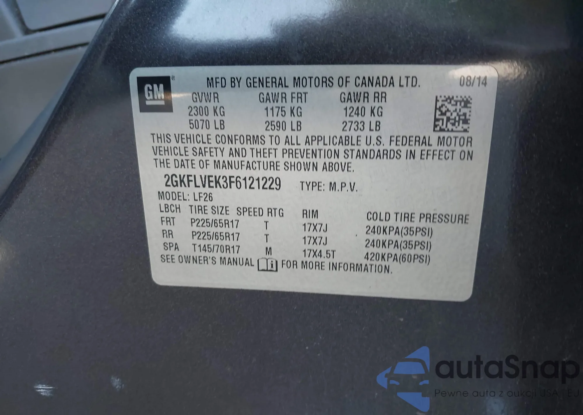 • VIN 2GKFLVEK3F6121229