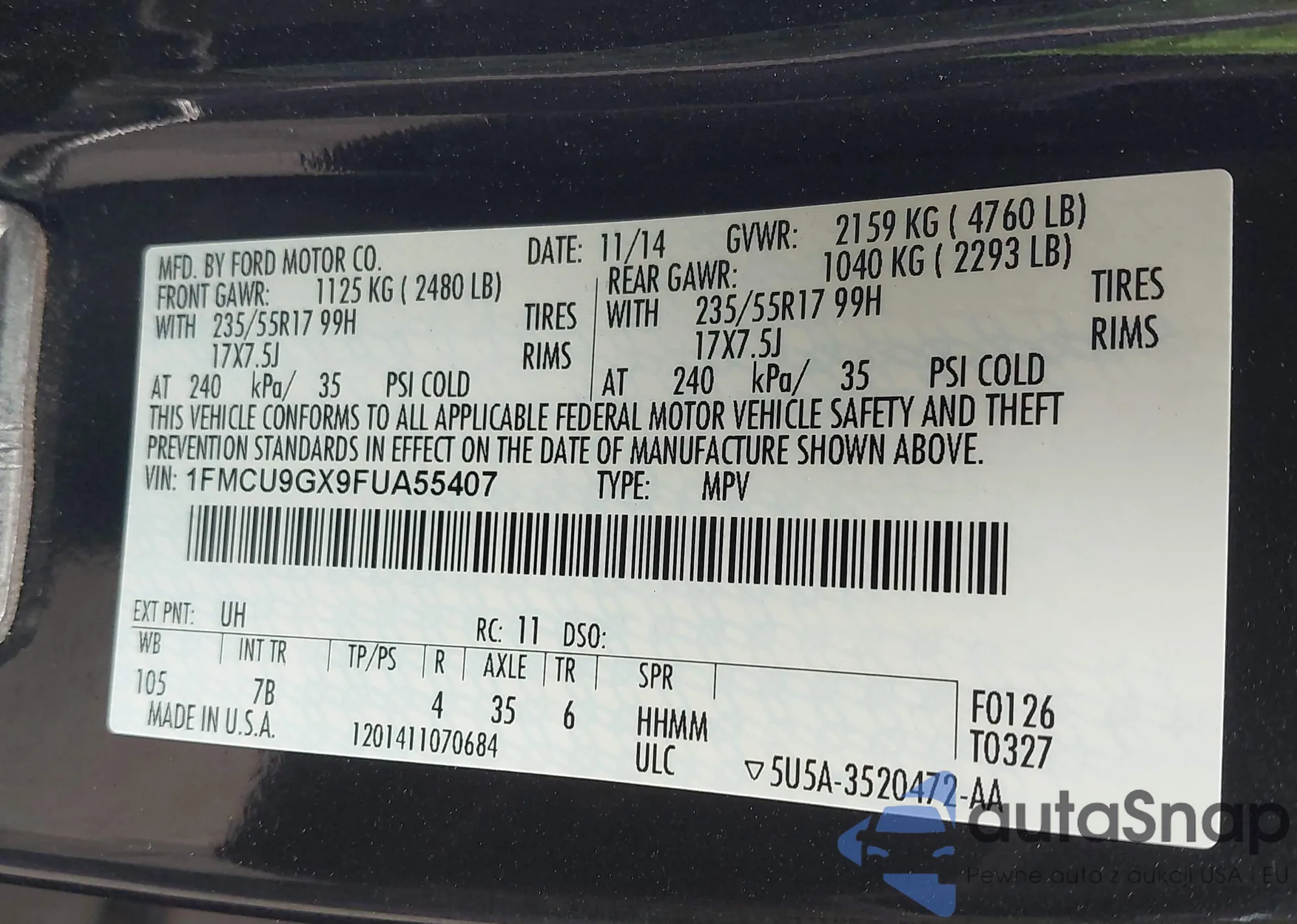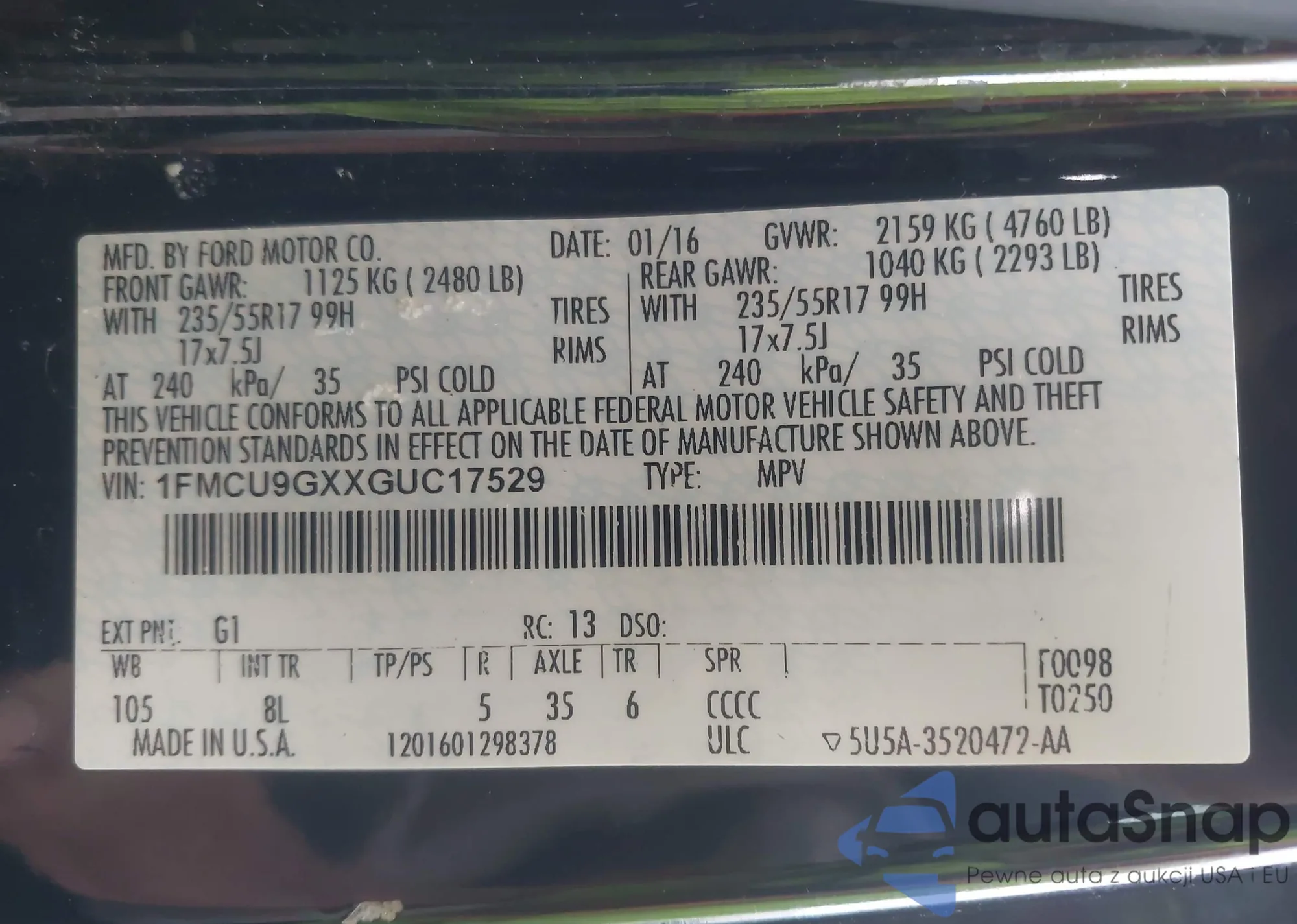 • VIN 1FMCU9GXXGUC17529