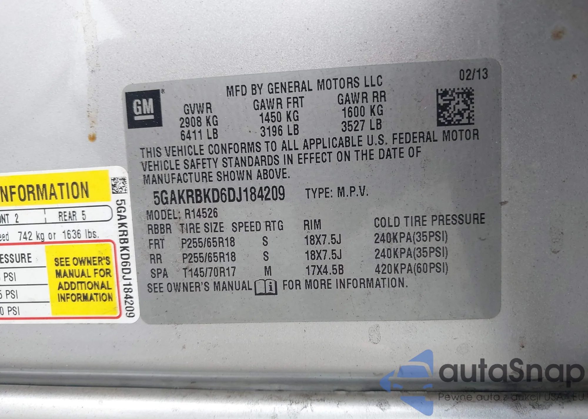 LOT: 42875793 VIN: 5GAKRBKD6DJ184209
