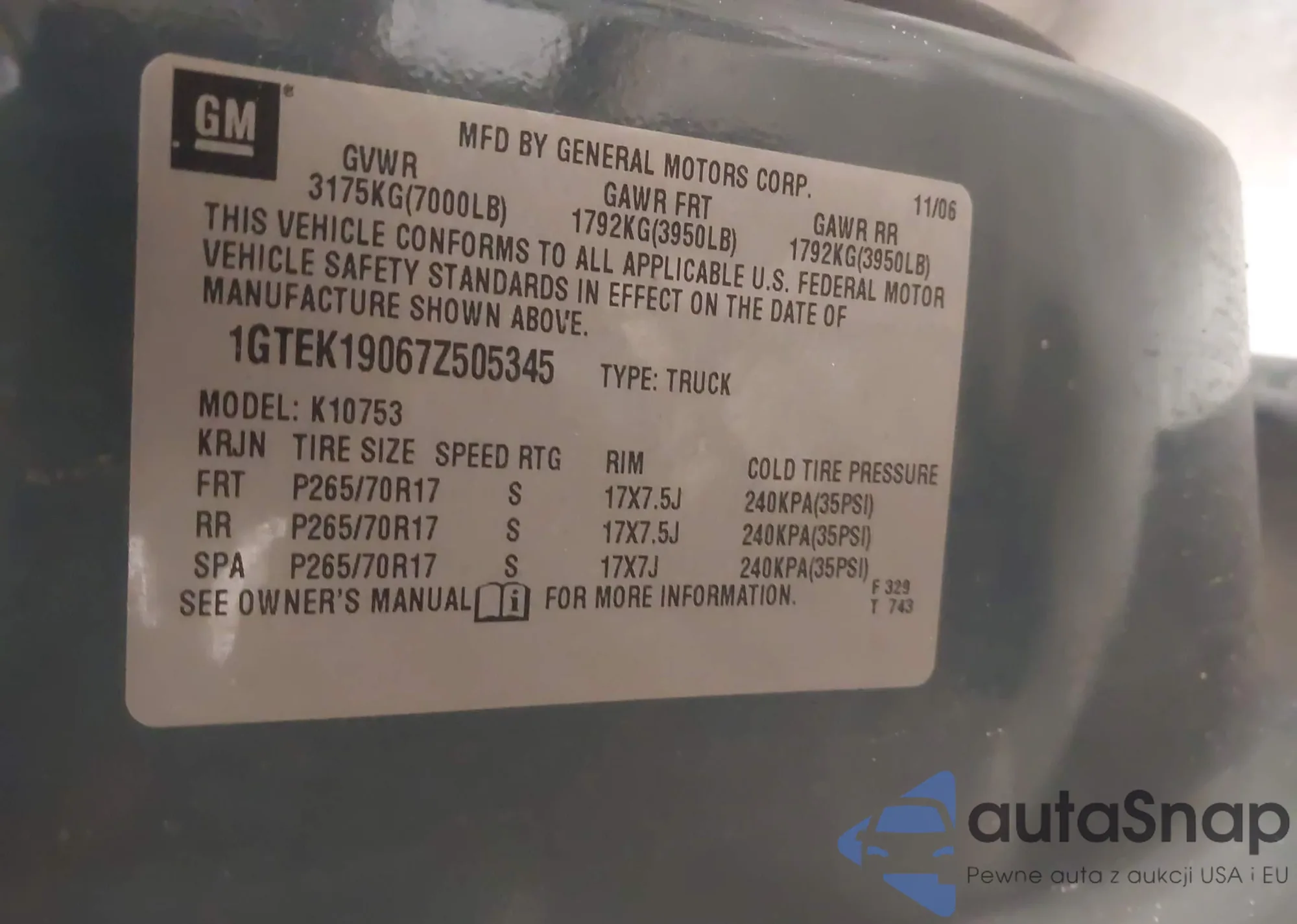 • VIN 1GTEK19067Z505345