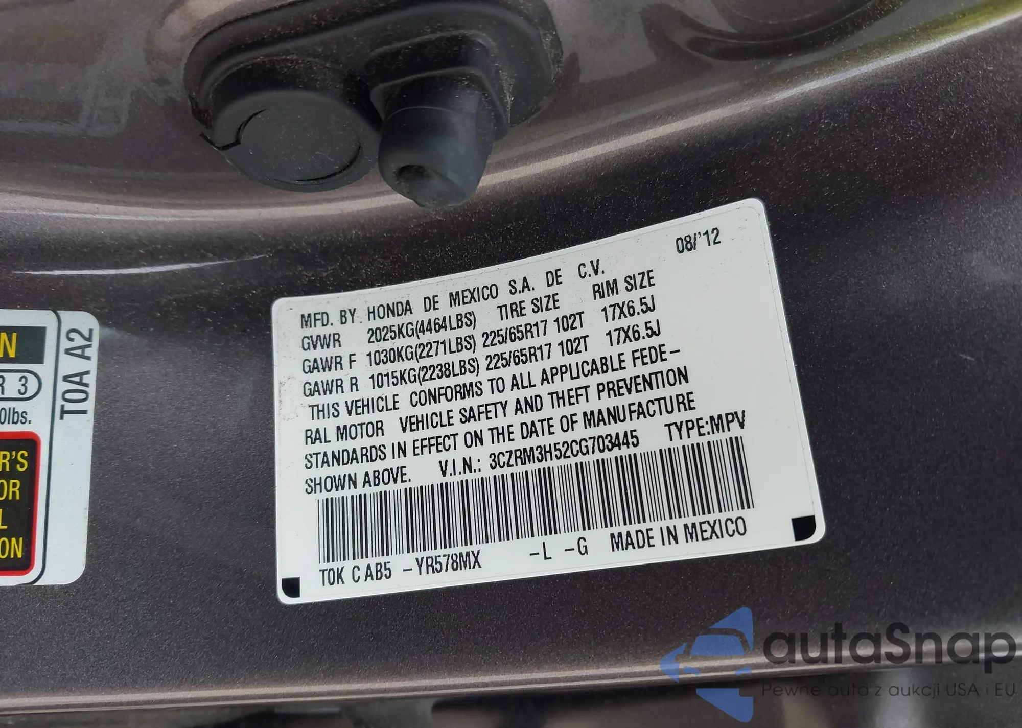 • VIN 3CZRM3H52CG703445