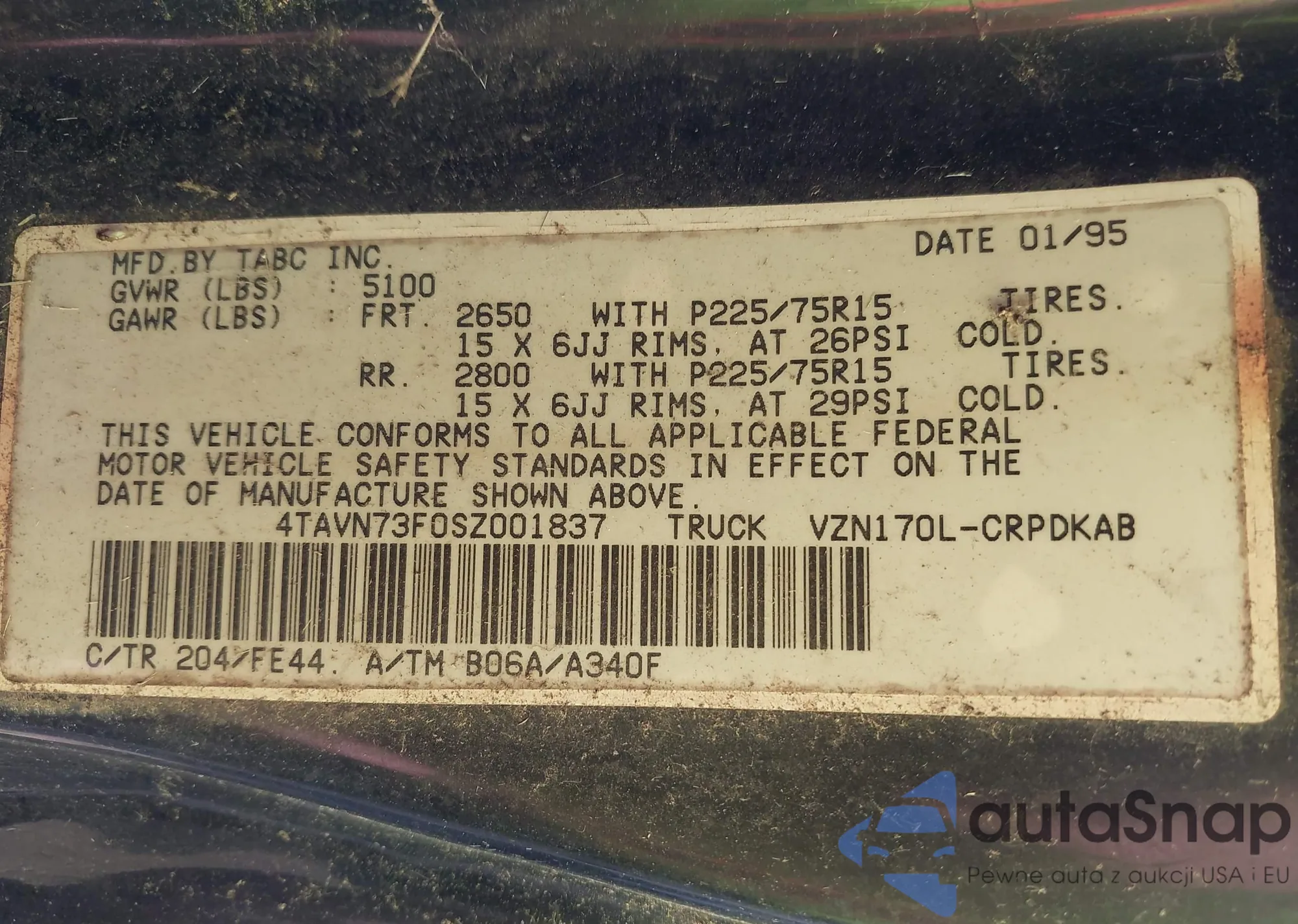 • VIN 4TAVN73F0SZ001837