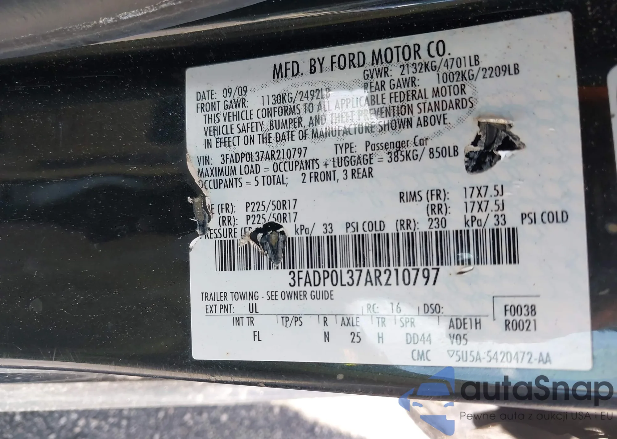 LOT: 42804875 VIN: 3FADP0L37AR210797