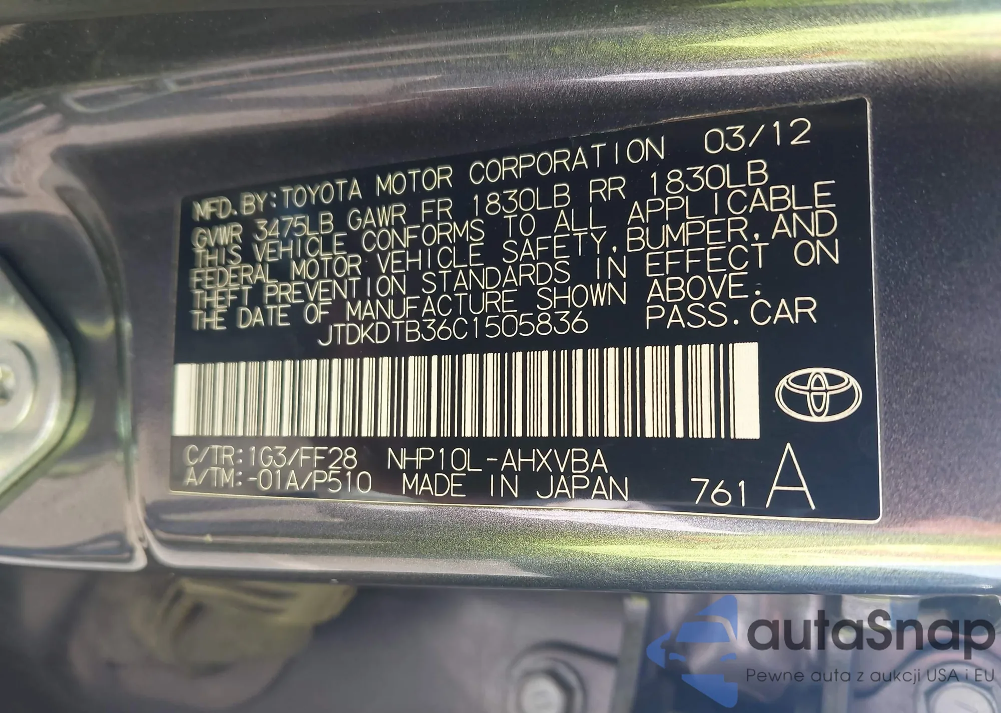 • VIN JTDKDTB36C1505836