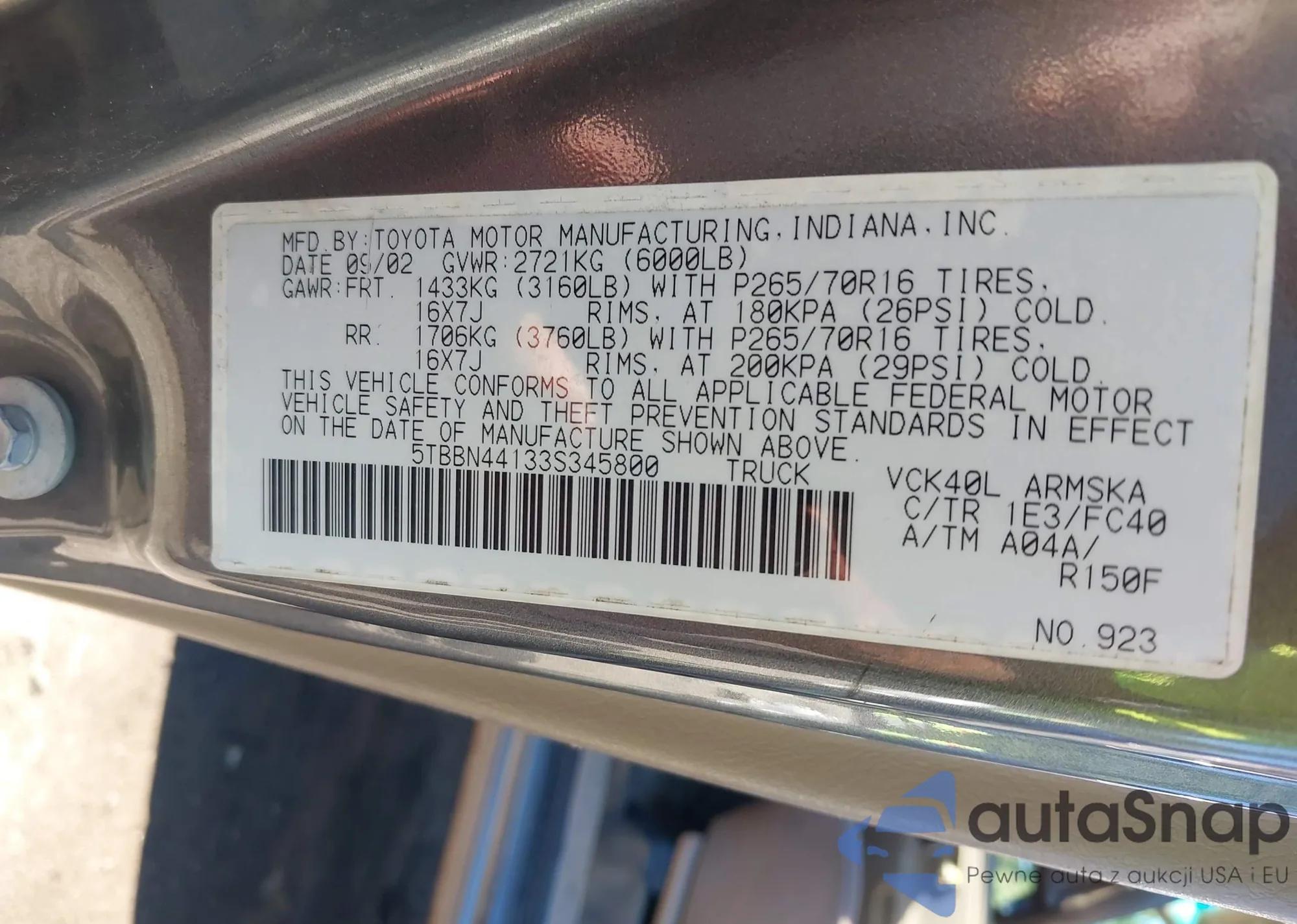 • VIN 5TFDY5F12HX606507