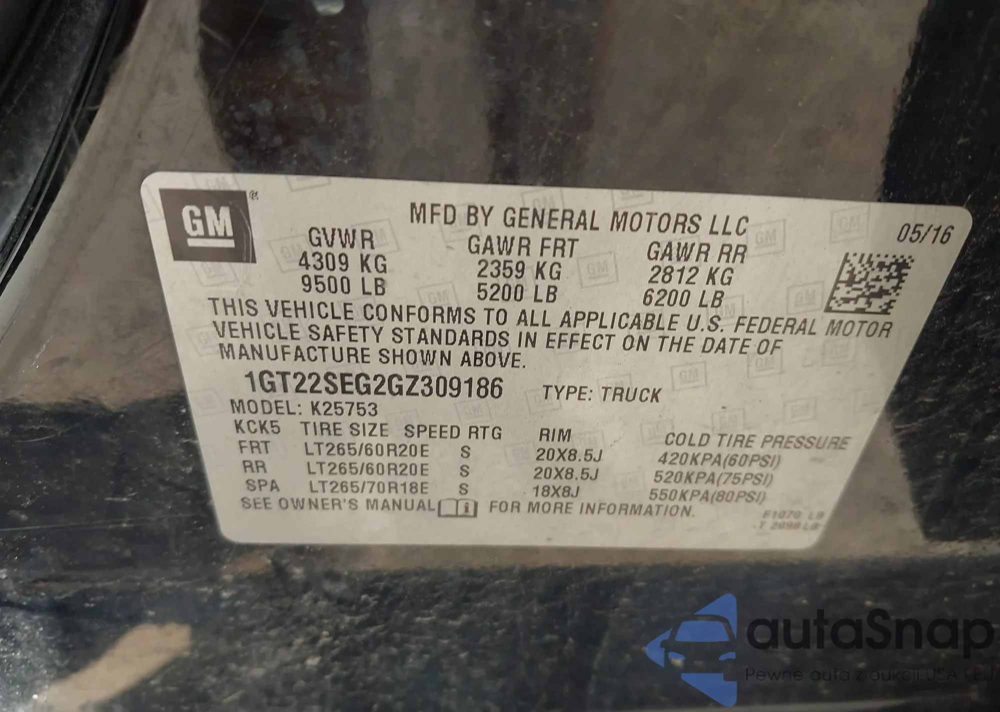 • VIN 1GT22SEG2GZ309186