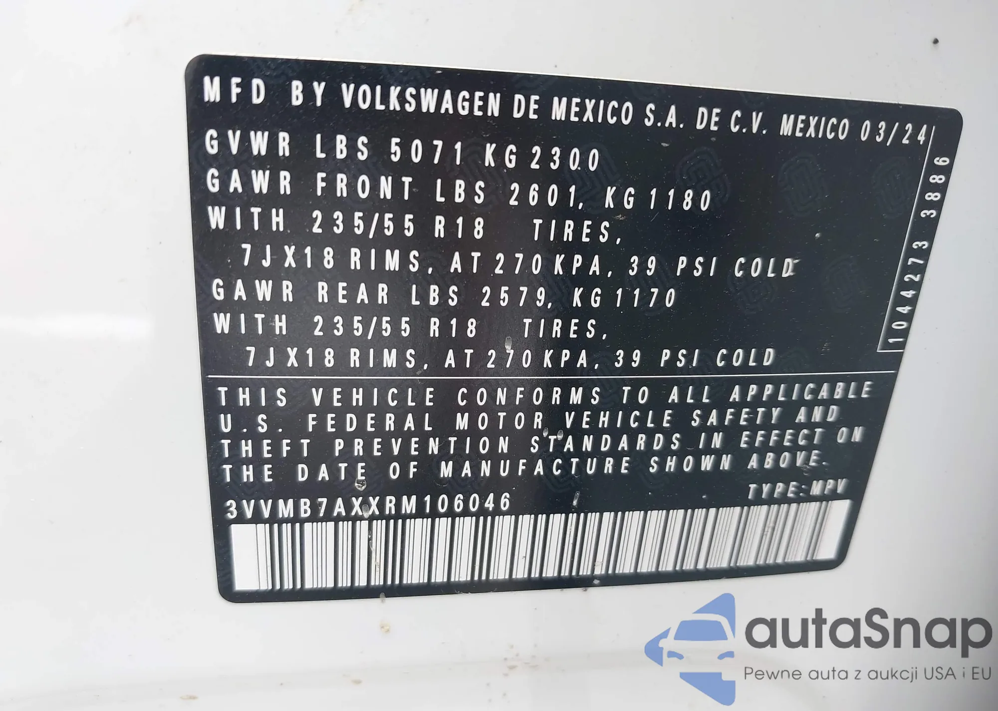 • VIN 3VVMB7AXXRM106046