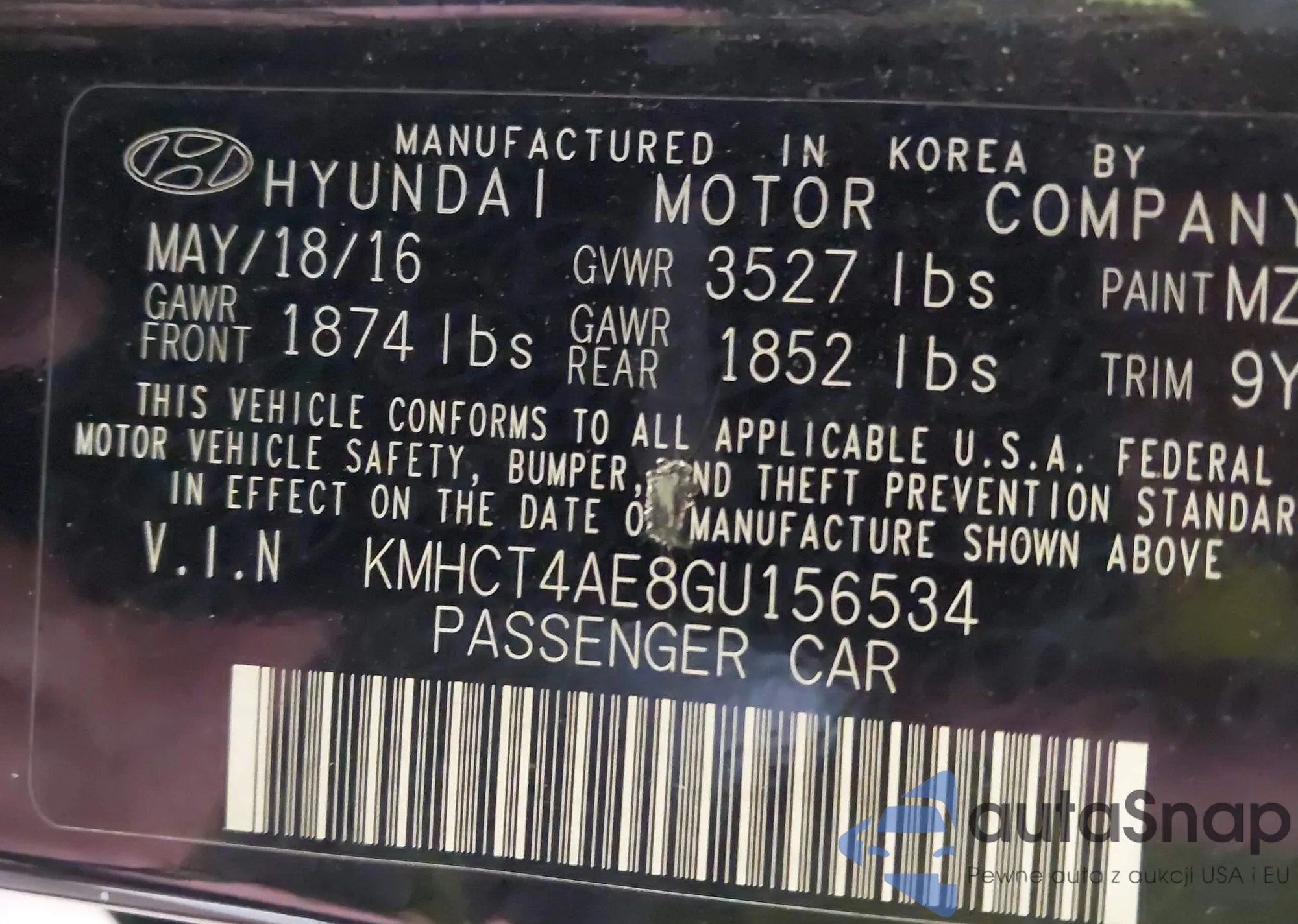 • VIN KMHCT4AE8GU156534