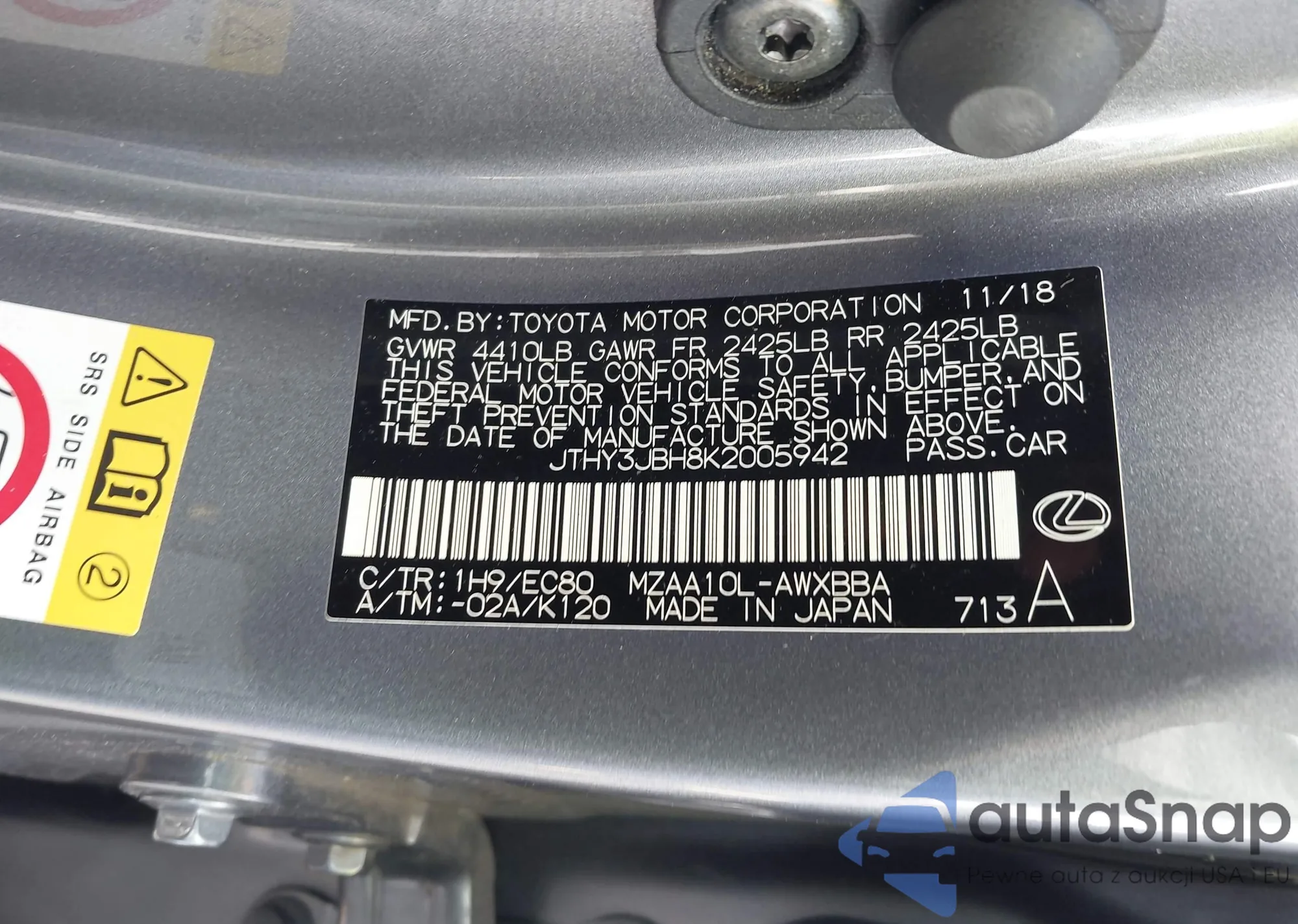 LOT: 43105138 VIN: JTHY3JBH8K2005942